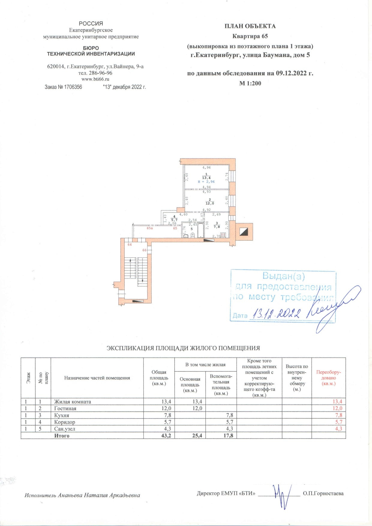 Общая площадь 43.2 м2