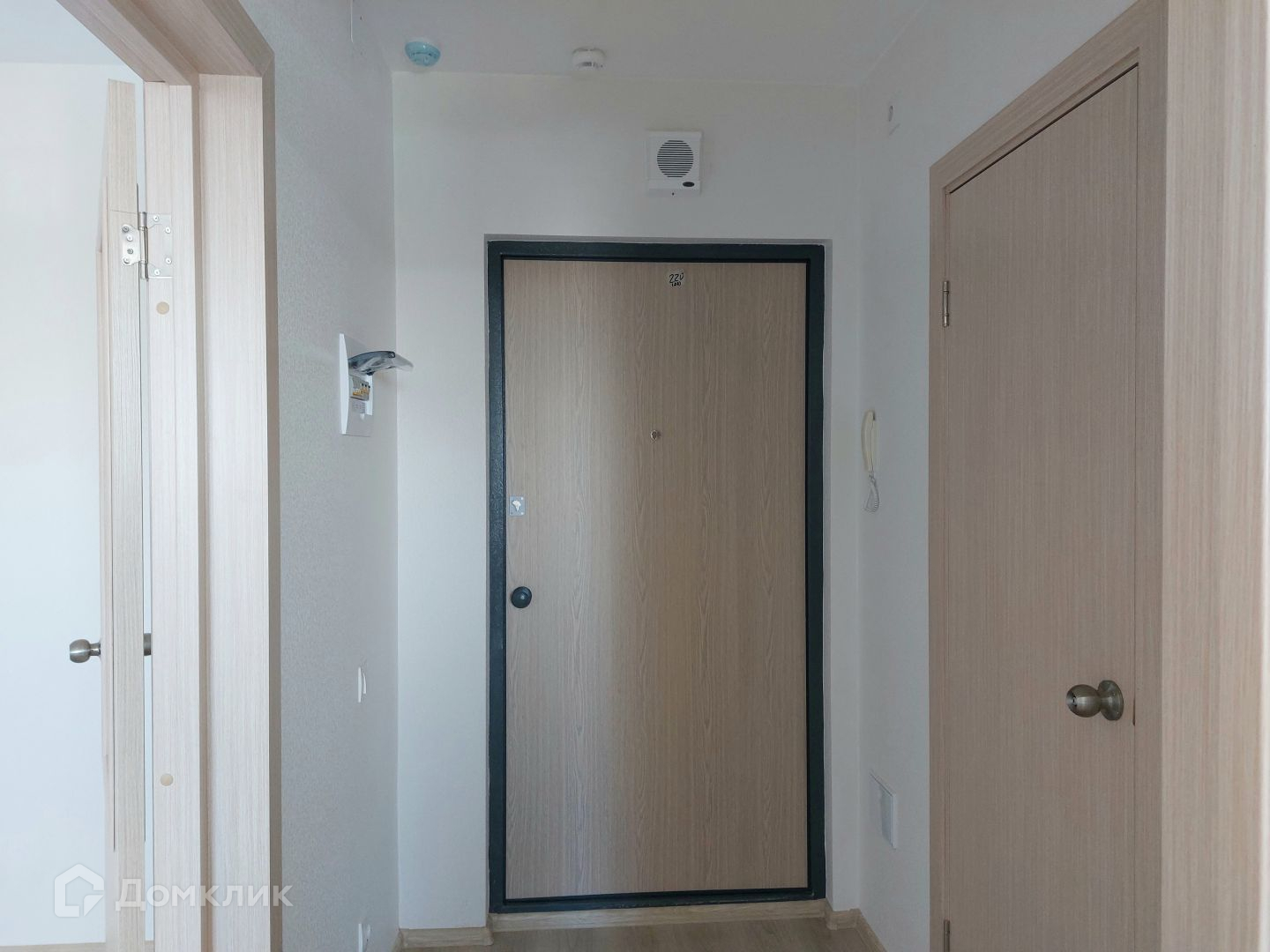 на полу ламинат, обои под покраску, красивые межкомнатные двери