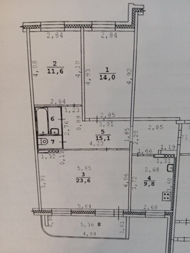 Жилая площадь 49.2 м2