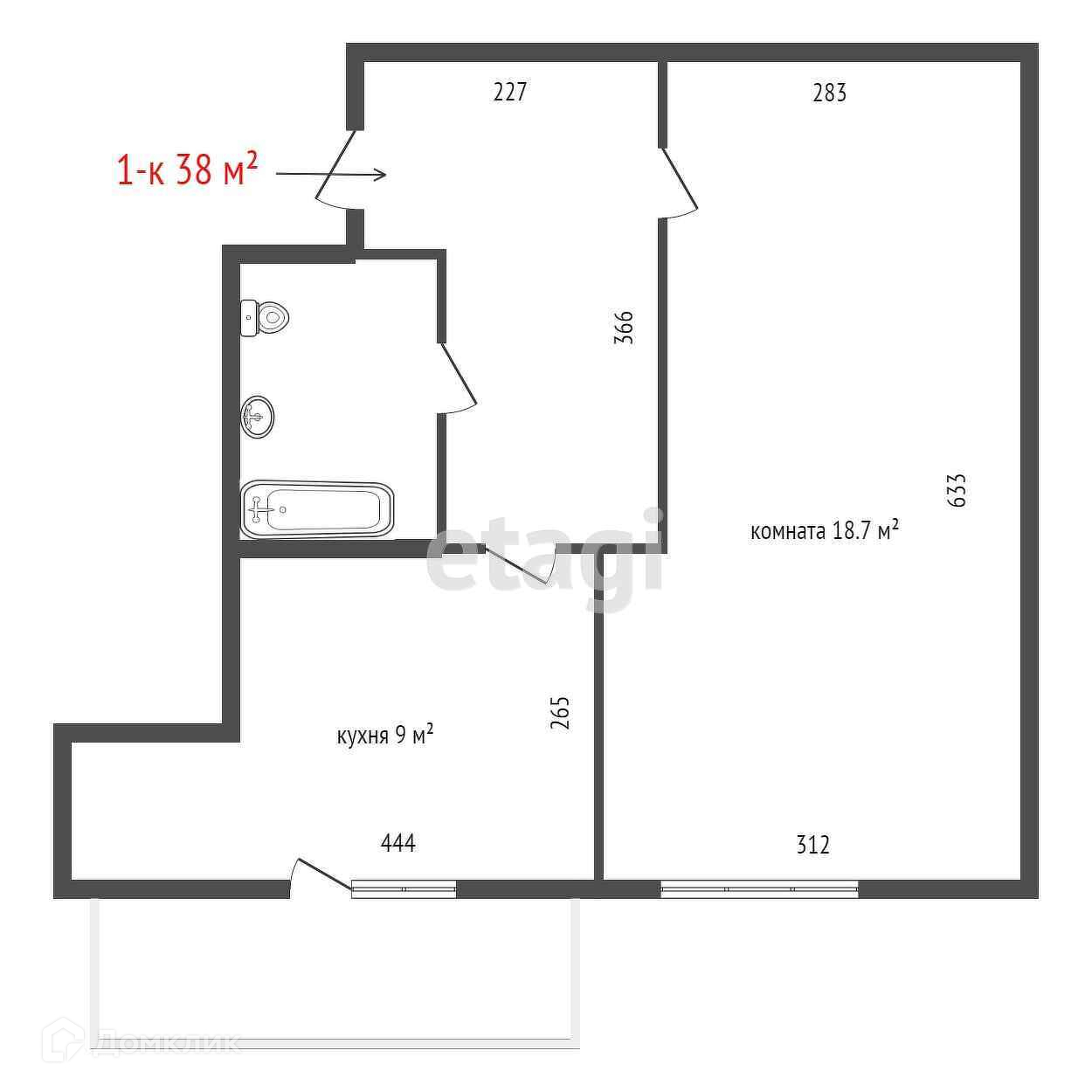 Общая площадь 38 м2