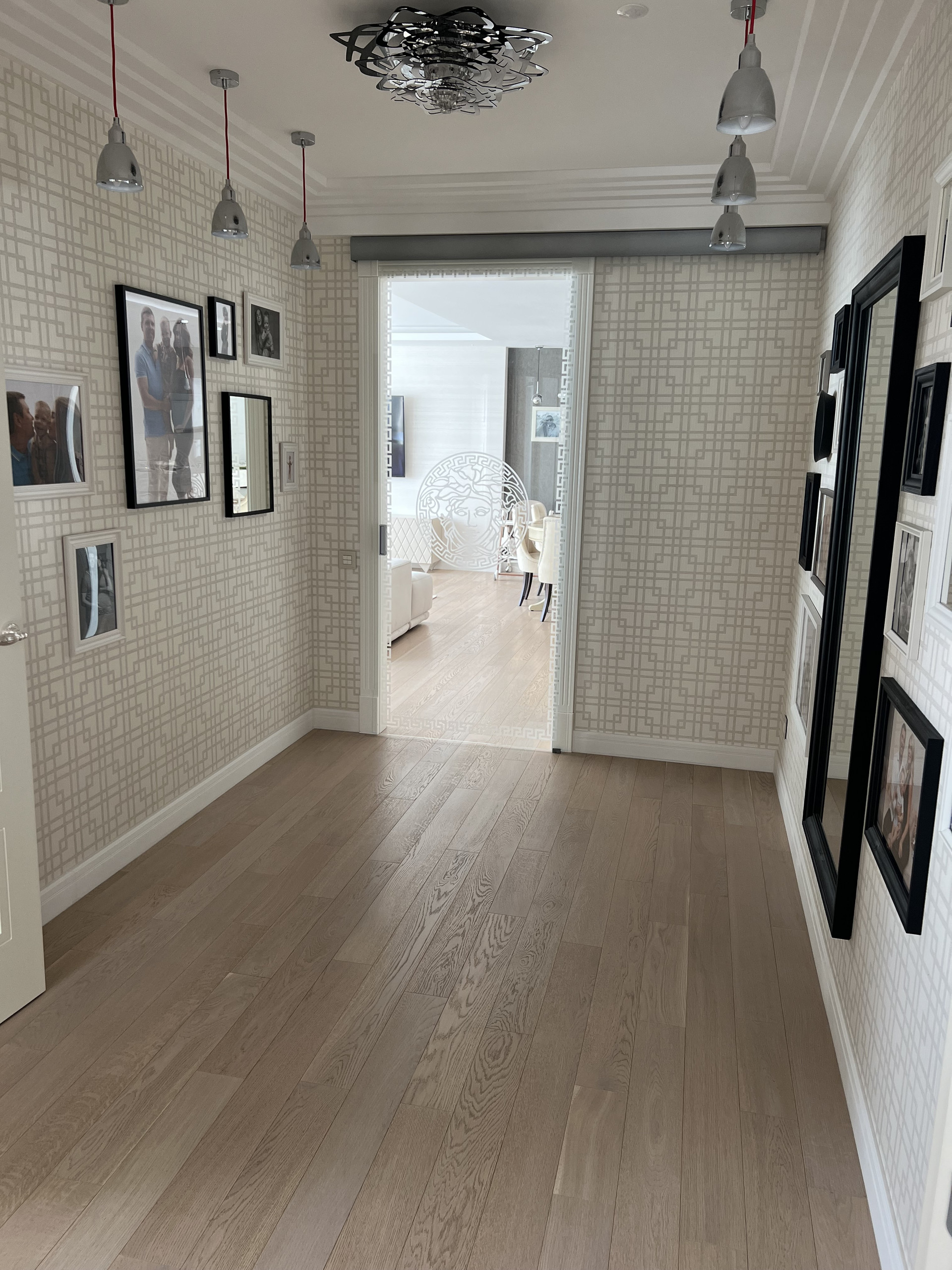 1гардеробная - под верхнюю одежду, просторный коридор, пол- итальянская плитка в стиле Версаче.