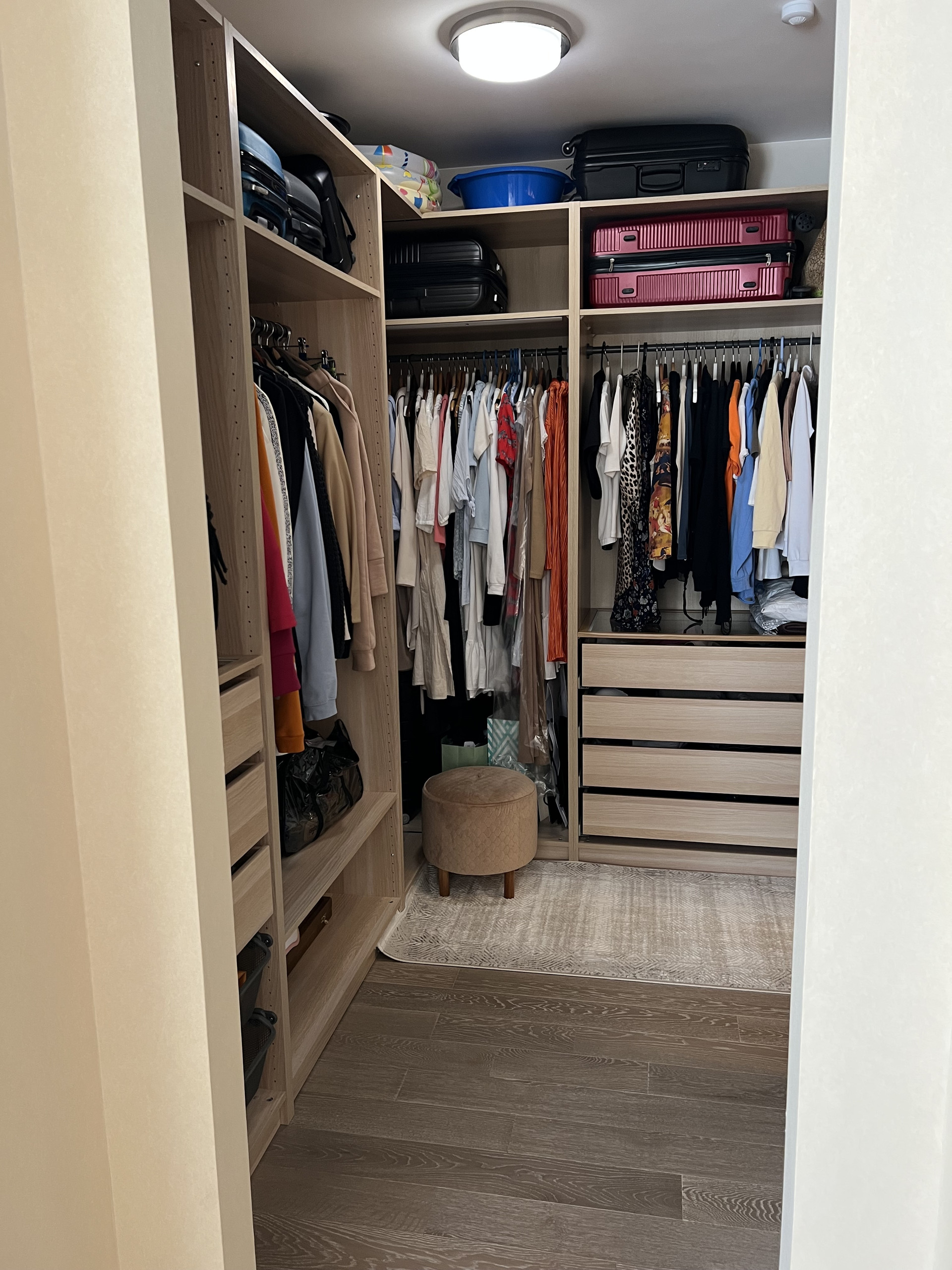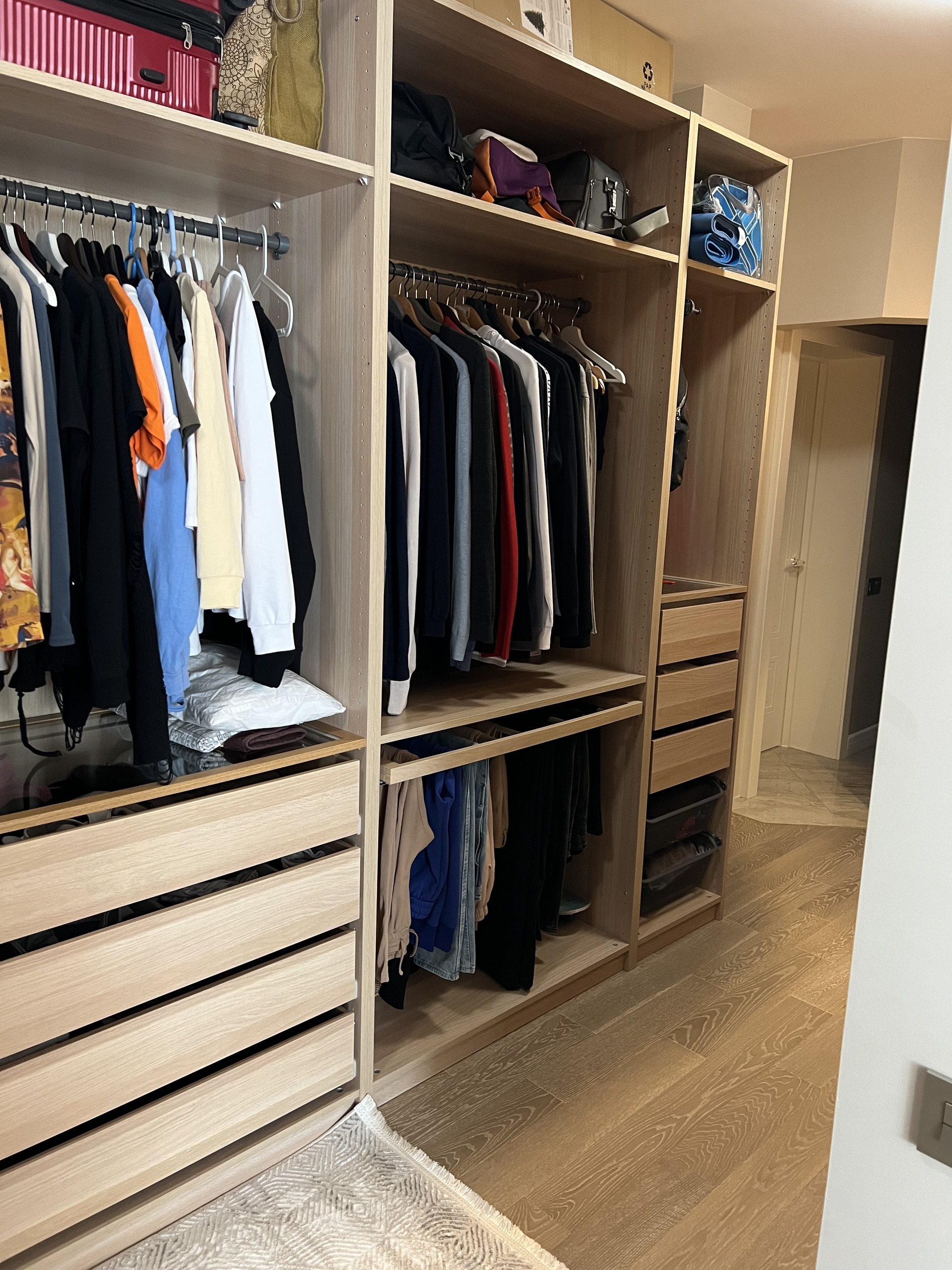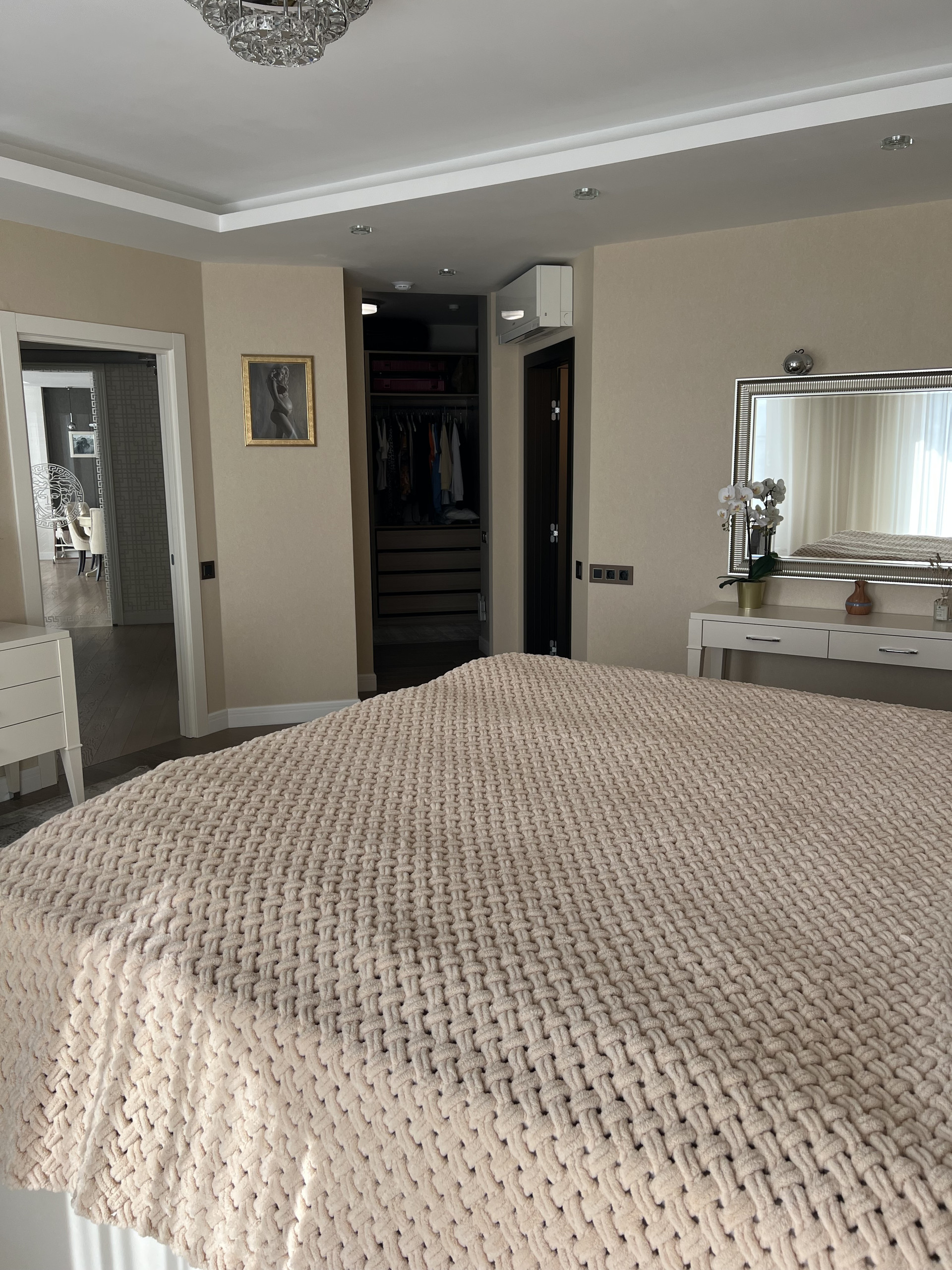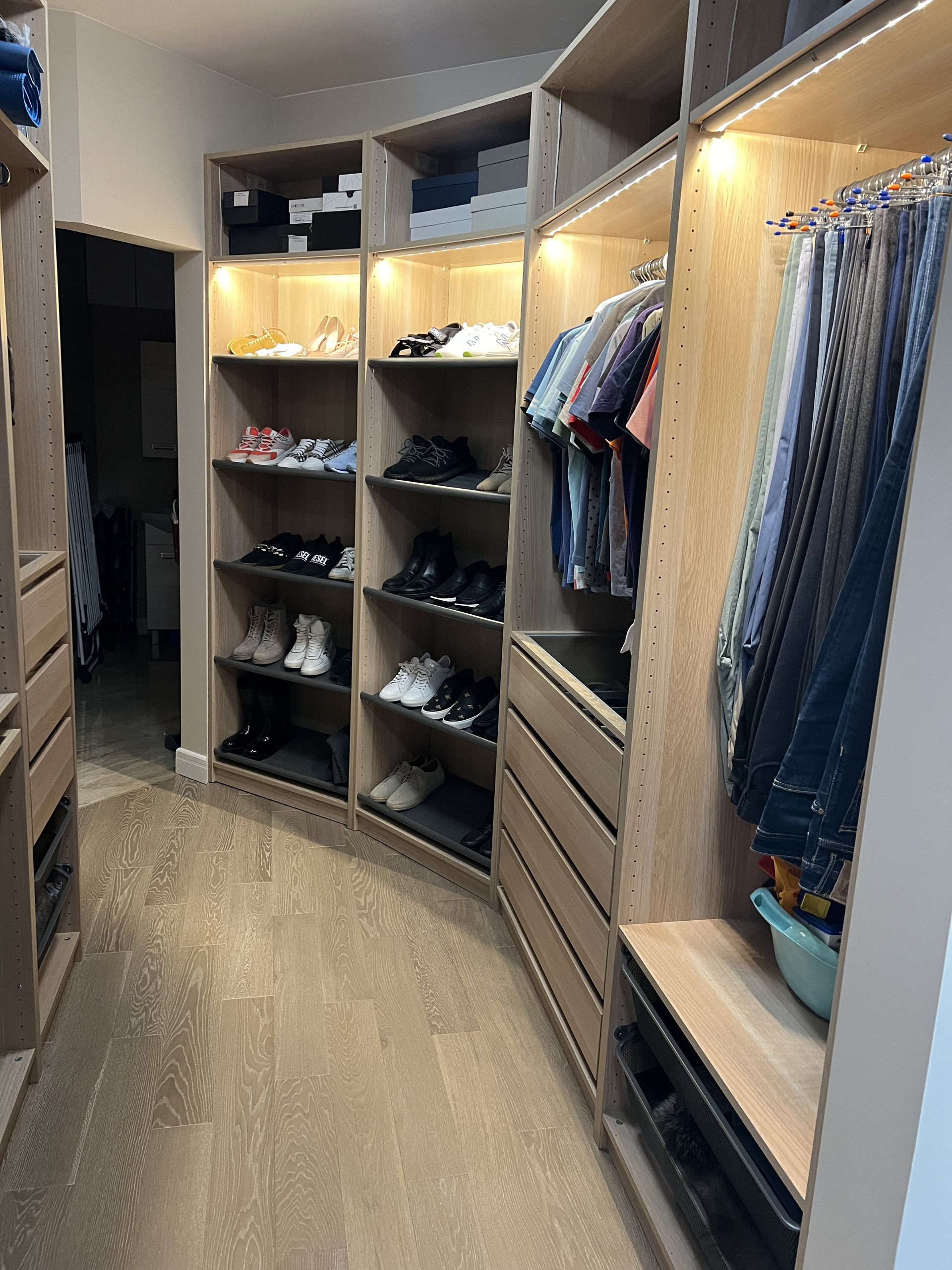 Большая гардеробная для всей семьи и отдельно постирочная комната. Выход в гардеробную есть с коридора и спальни. Стоят фильтры на горячую и холодную воду.