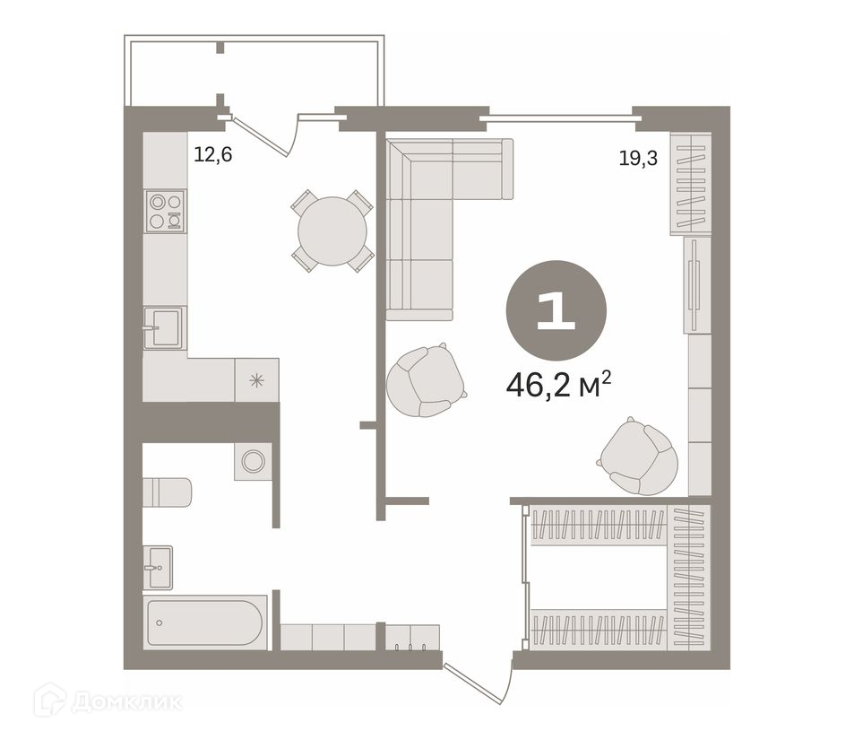 Общая площадь 46.2 м2