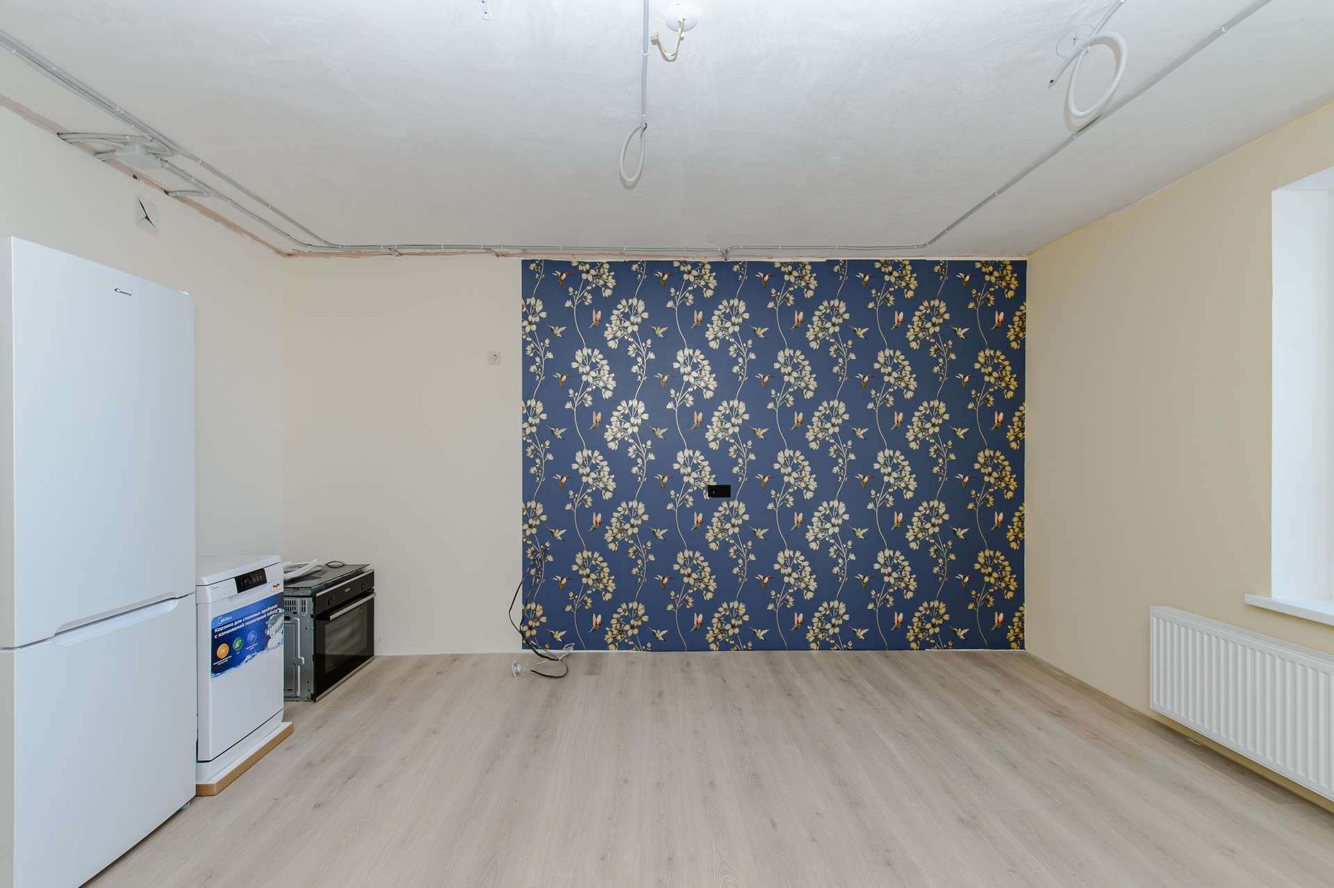 Для вас в подарок остаётся новая бытовая техника (холодильник, посудомоечная машина, духовой шкаф и индукционная варочная поверхность).