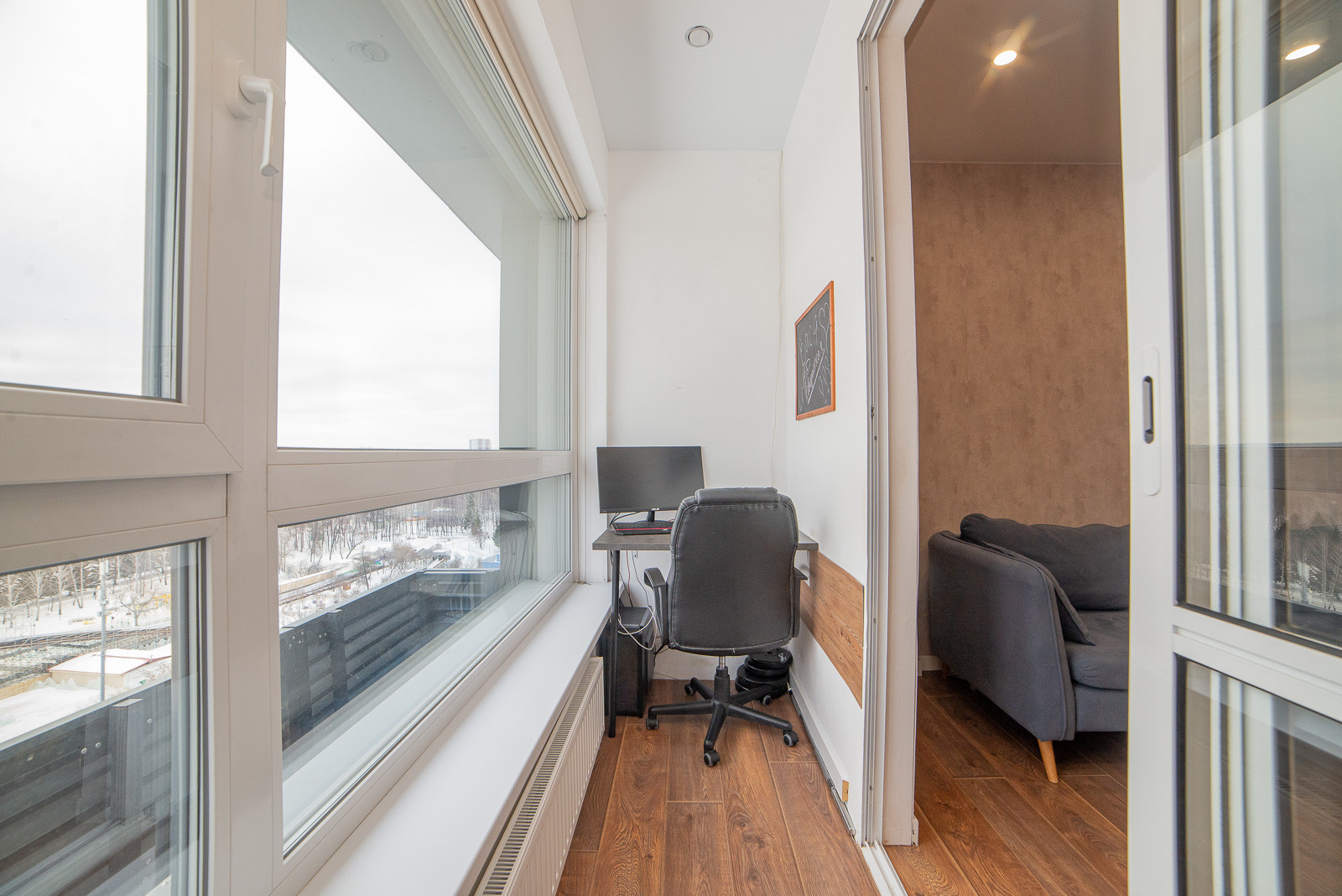 Высокий видовой этаж, окна на парк, дом сдан, ремонтные работы соседей завершены на 90%.
