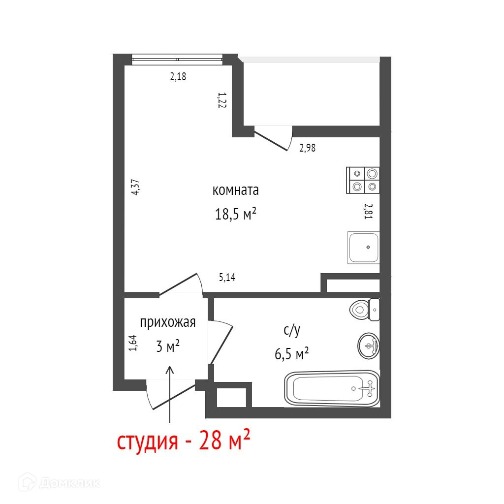 Общая площадь 28 м2