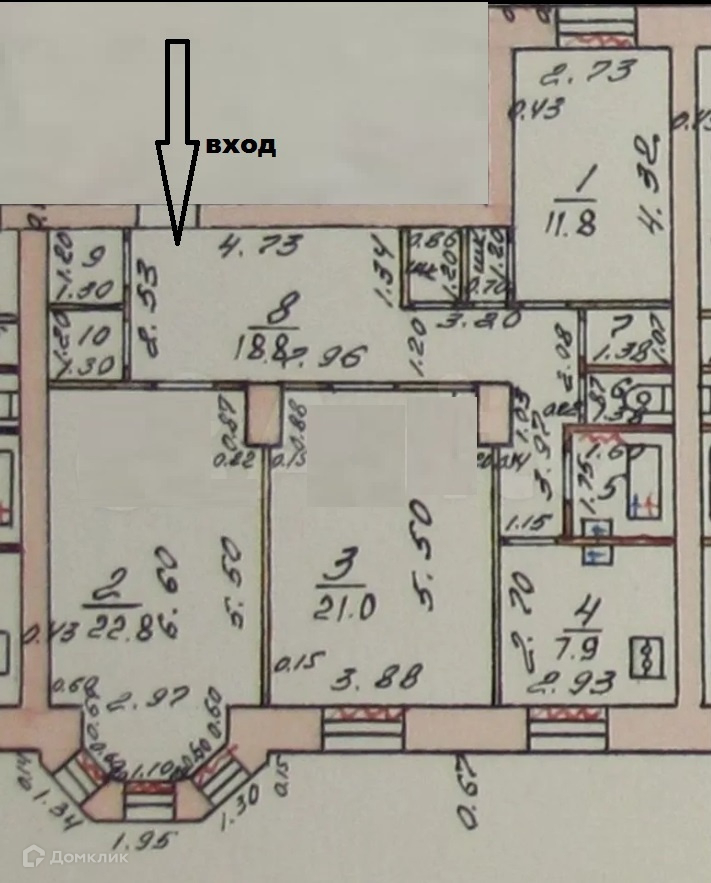 Жилая площадь 55.6 м2