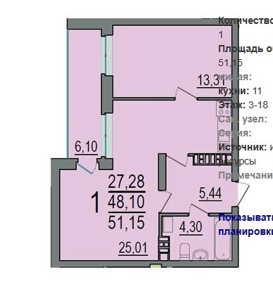 Общая площадь 51 м2
