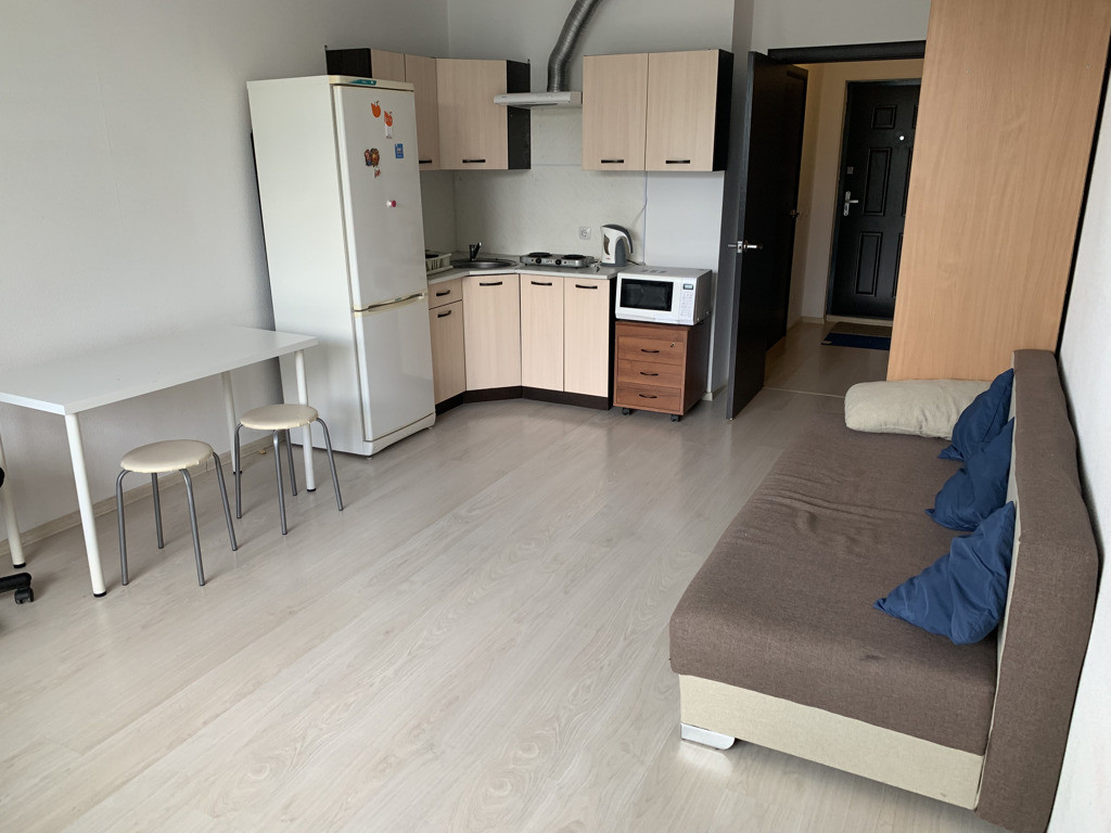 Отличный вариант для молодой семьи - все в шаговой доступности. Инфраструктура района хорошо развита. Дом 2017 года. Квартира - студия солнечная с необходимой мебелью для жизни. Все предложения по оплате принимаются и обсуждаются.