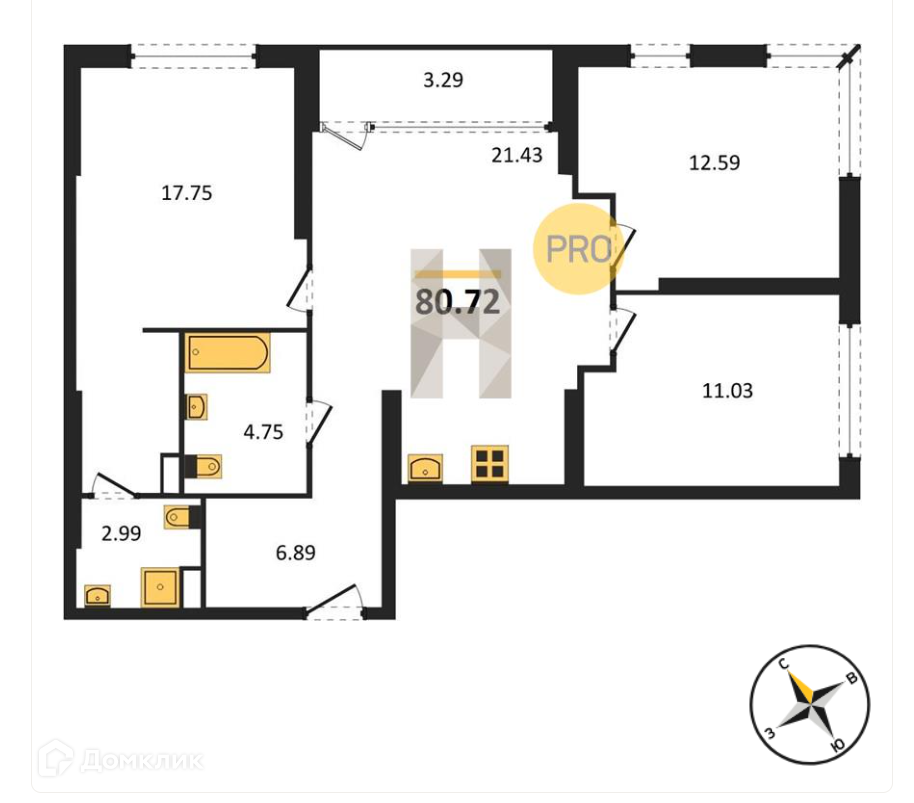 Общая площадь 80.72 м2
