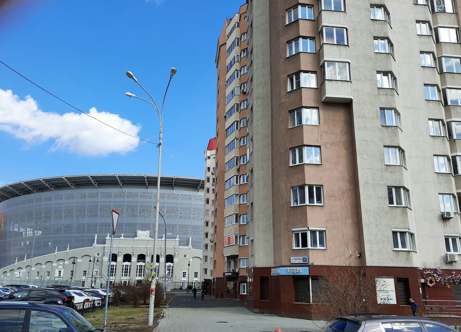 Дом удачно расположен внутри квартала, из окон красивый вид на город. Рядом остановки автобусов, трамваев и троллейбусов (23 маршрута). Закрытый двор оборудован площадками для игр детей, занятий спортом для взрослых и парковкой для велосипедов. Рядом вся инфраструктура развитого района. По приписке школы 1 и 69, рядом с домом детский сад Теремок с детской футбольной школой. С парковками у дома тоже всё хорошо. Так же можно арендовать или купить место в подземном паркинге.