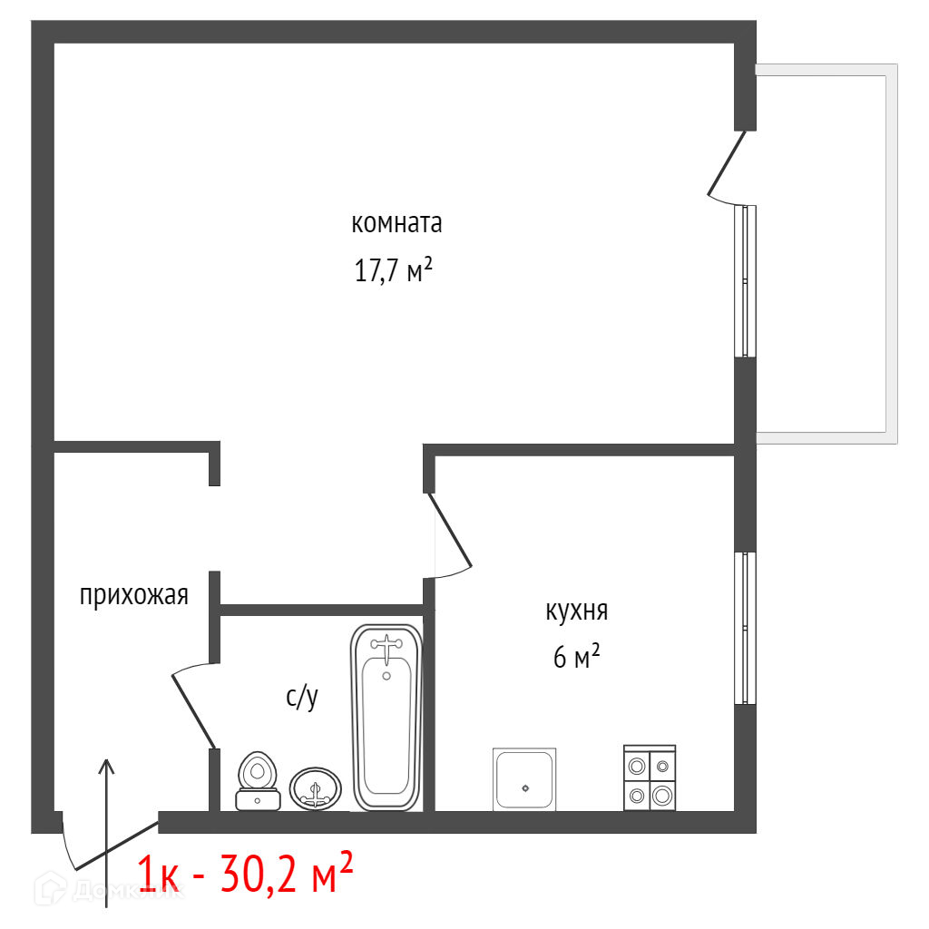 - окна комнаты выходят на улицу, а окно кухни выходит на детский сад