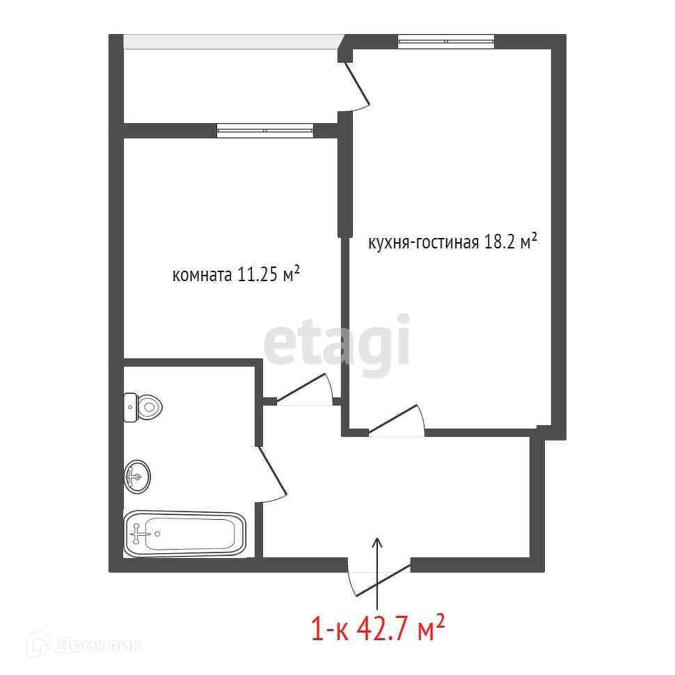 Общая площадь 42.7 м2