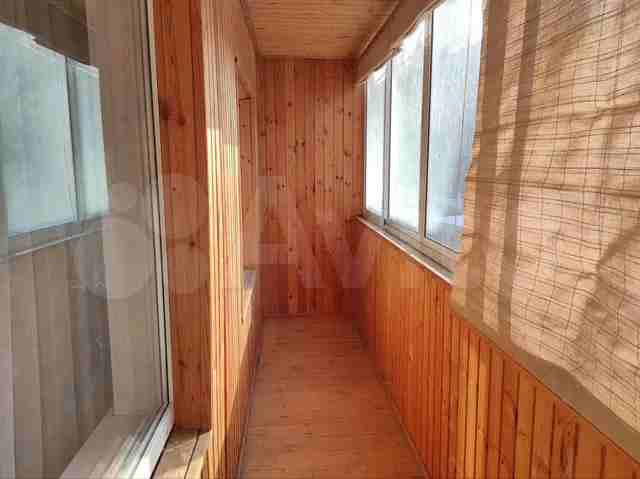 Внутренняя поверхность балкона обшита деревом;