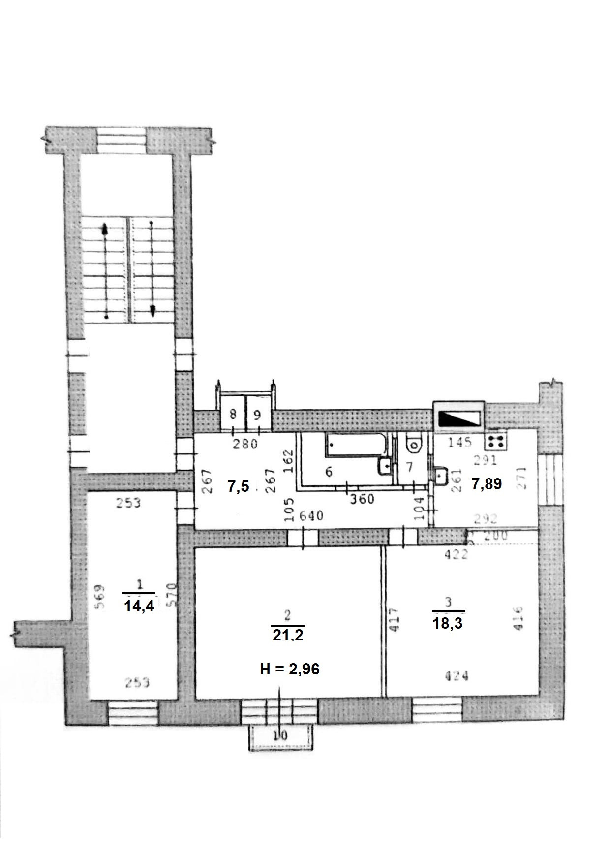 Высота потолков 2.9 м