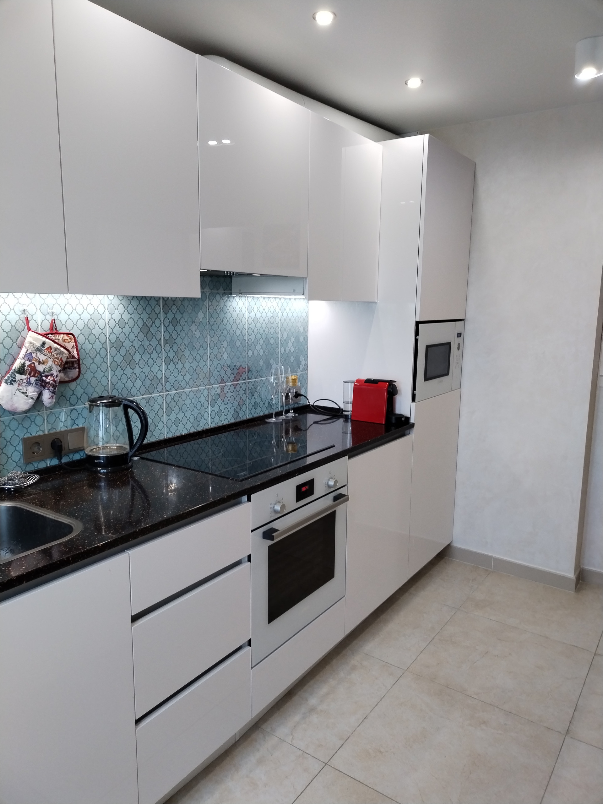 Кухонный гарнитур, оборудованный импортной встроенной качественной техникой (посудомоечная машина, электроплита, сенсорная варочная панель, вытяжка) не входит в стоимость квартиры, продаётся по дополнительной цене.