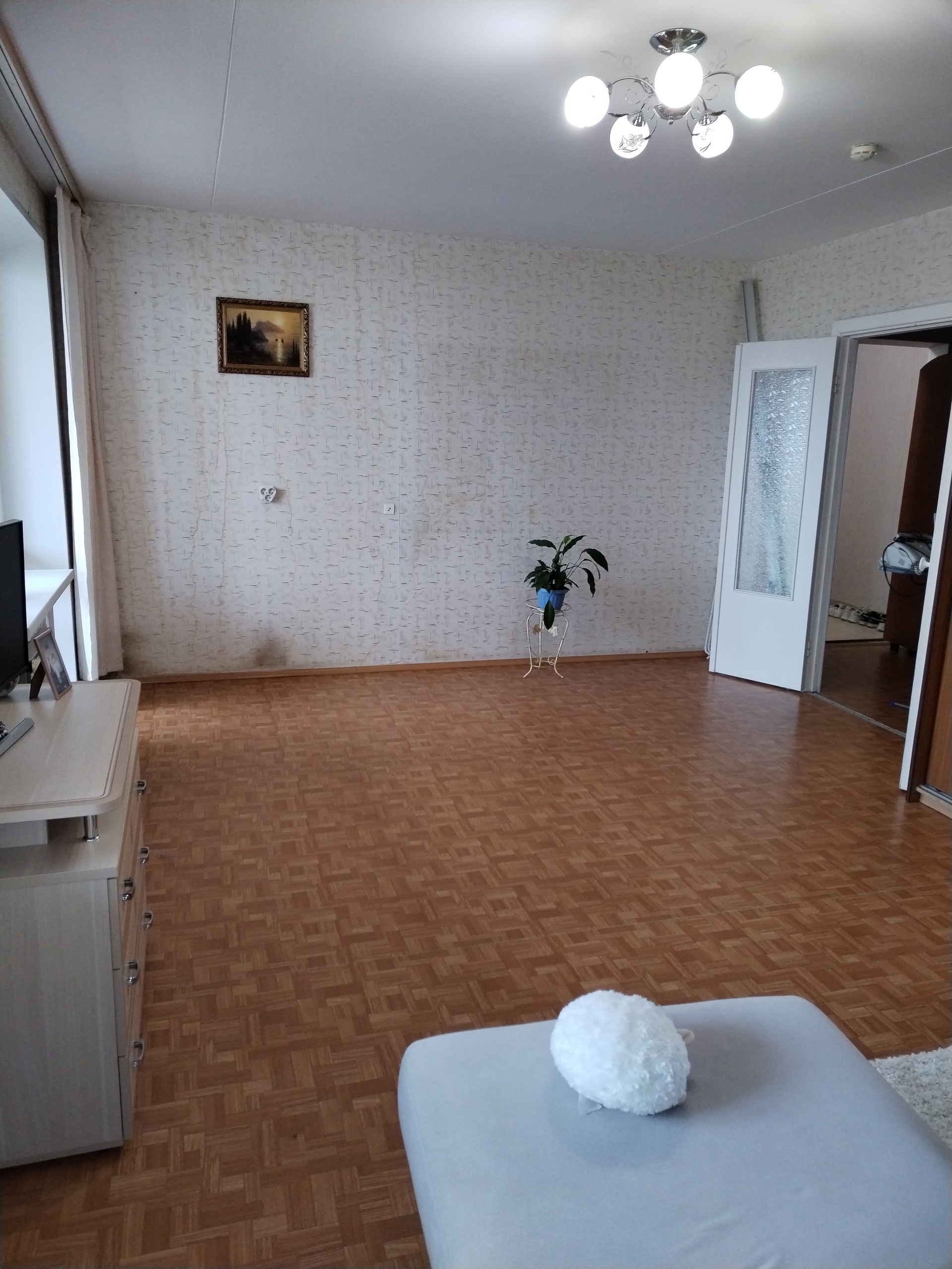 Гостиная комната 23 кв.м., с выходом на большую, уютную, обшитую деревом лоджию – 7,6 кв.м.