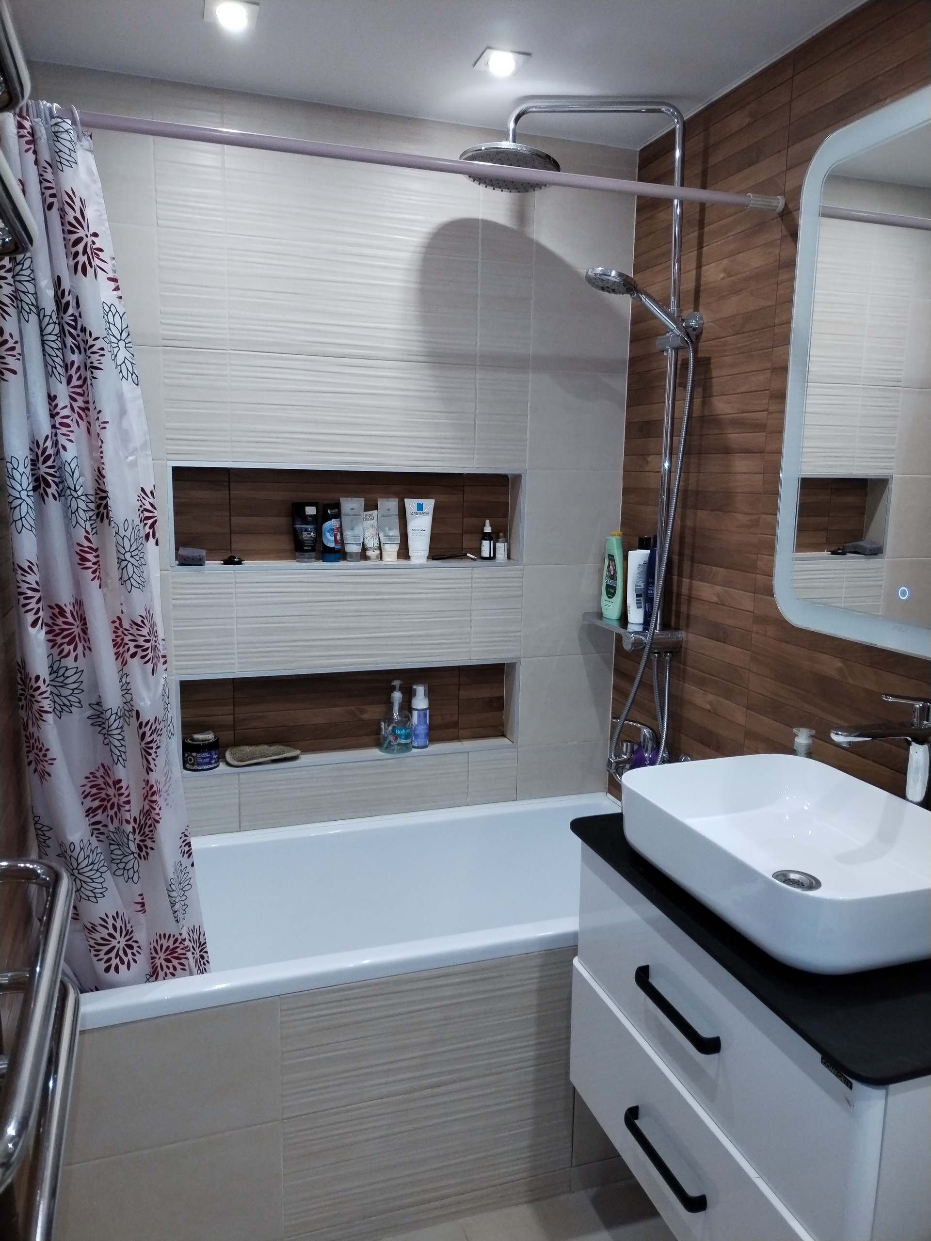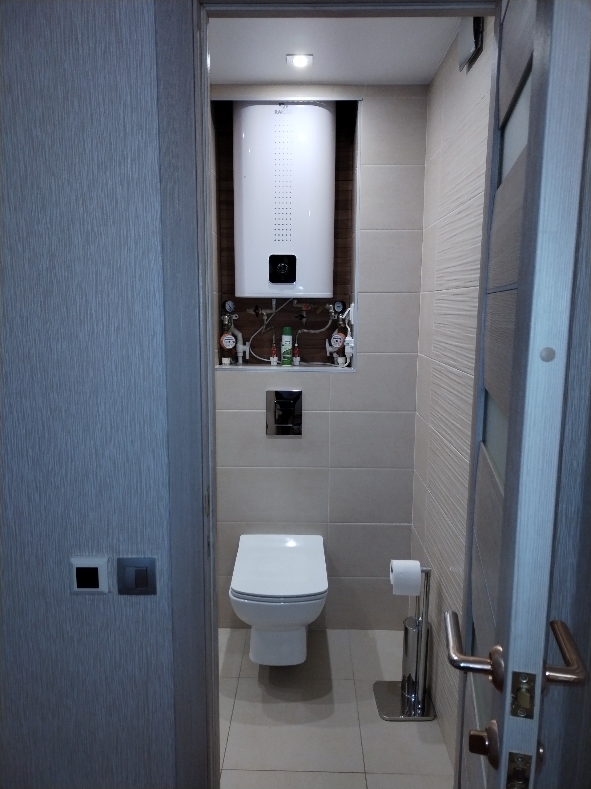 Сан.узел полностью в кафельной плитке, установлен водонагреватель. Перепланировка согласована.