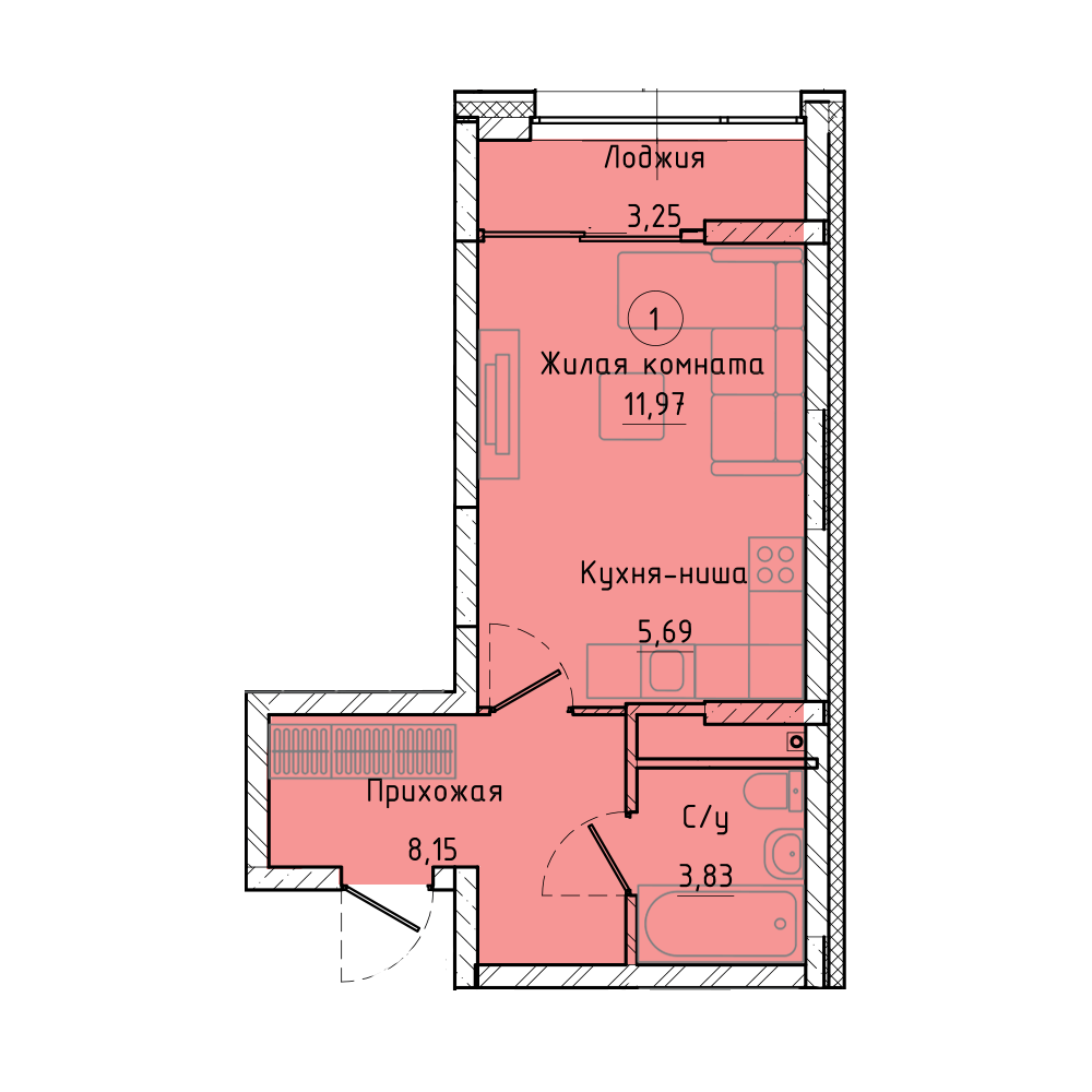 Общая площадь 31.27 м2