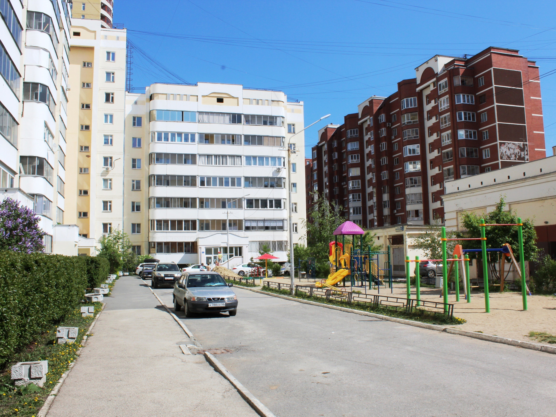 ДВОР: Закрытый, очень зеленый и тихий двор. Оборудована детская и спортивная площадка с кортом. Всегда есть места для парковки автомобилей: перед домом большая бесплатная парковка, есть платная парковка, а также подземный паркинг.