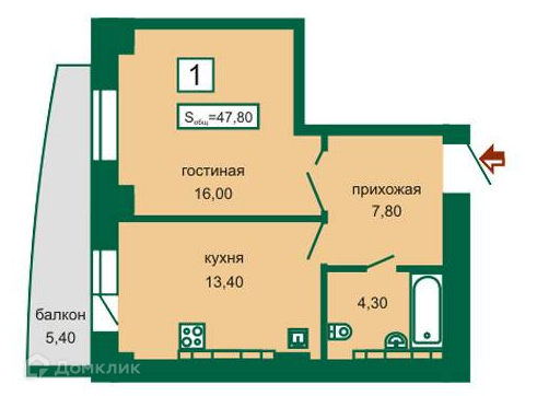 Общая площадь 48 м2