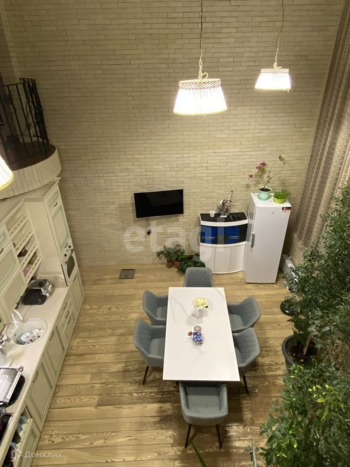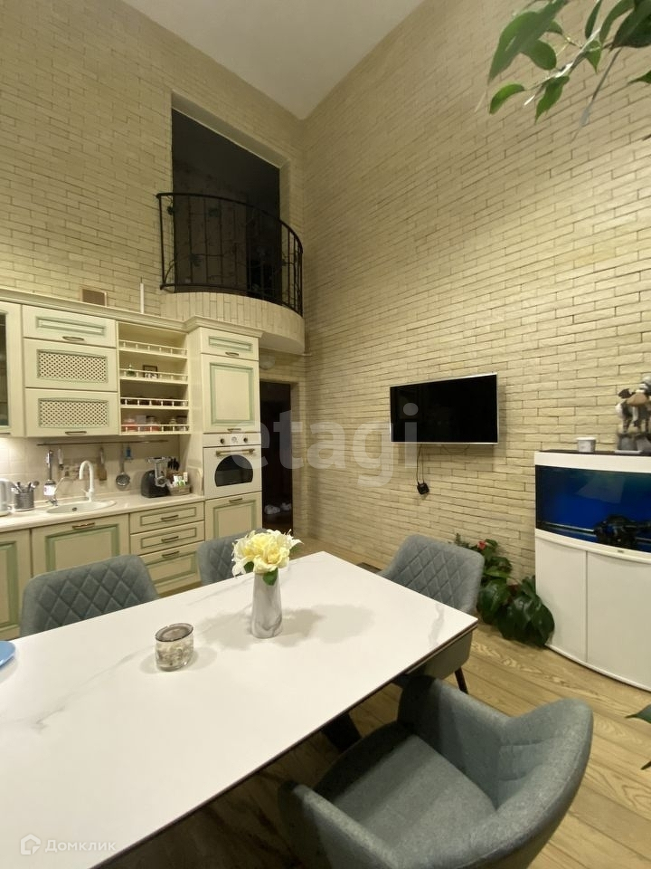 В квартире - 6 комнат, кухня-гостиная с высокими потоками (5м), рабочий кабинет, 2 комнаты отведены под спортзал, сауна, 2 санузла.