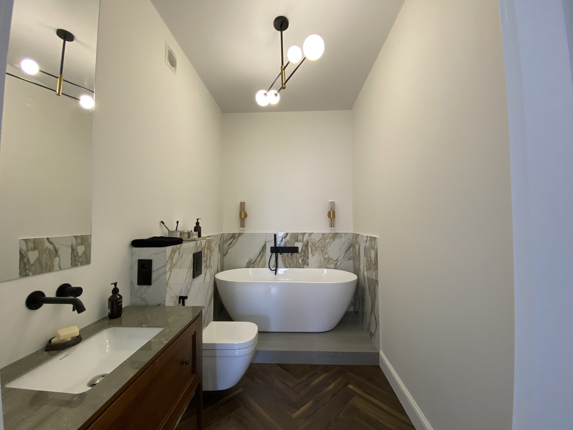 В квартире сделан качественный, дизайнерский ремонт из современных материалов. Мебель изготавливалась по дизайн проекту. При продаже в квартире остается вся мебель и техника.