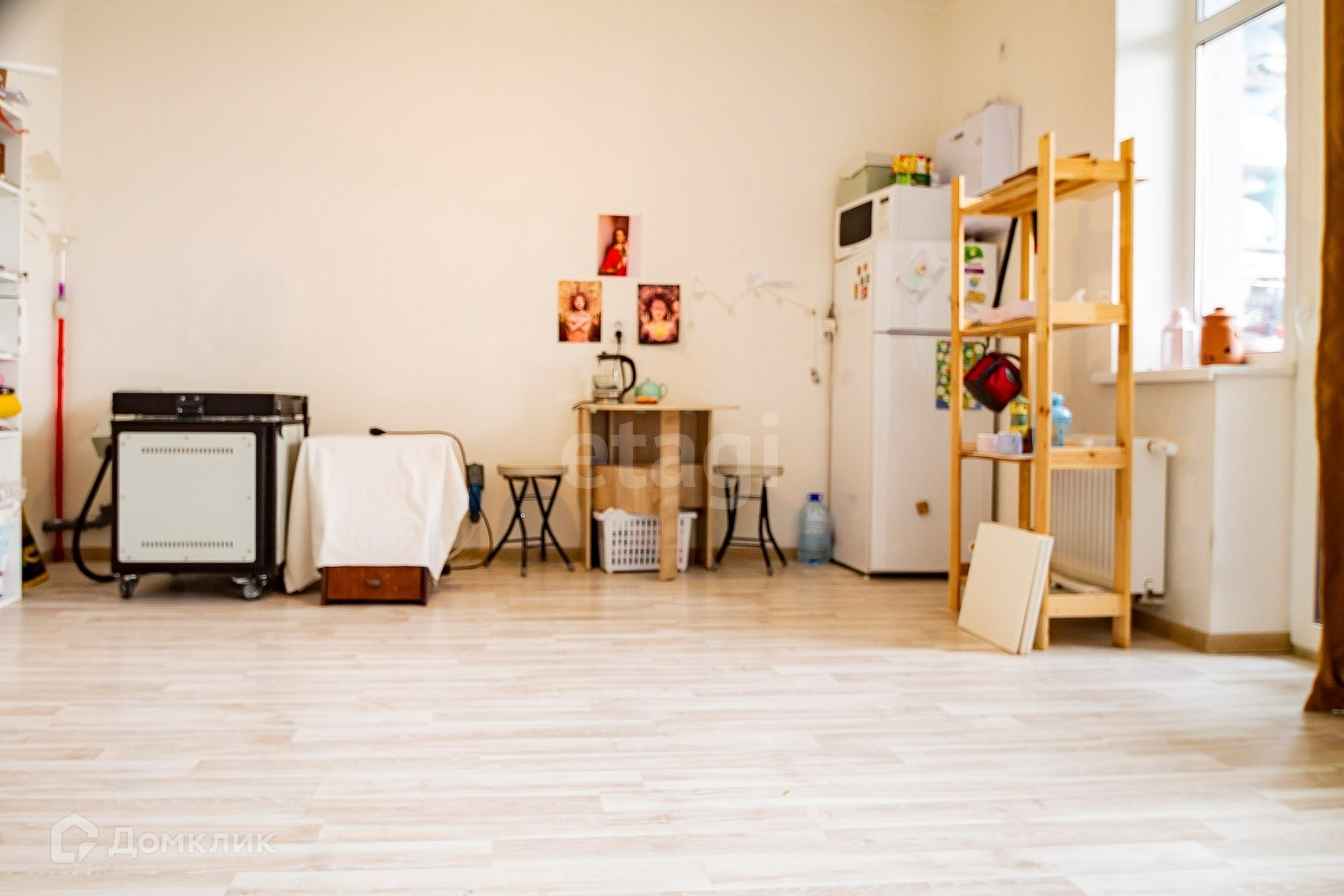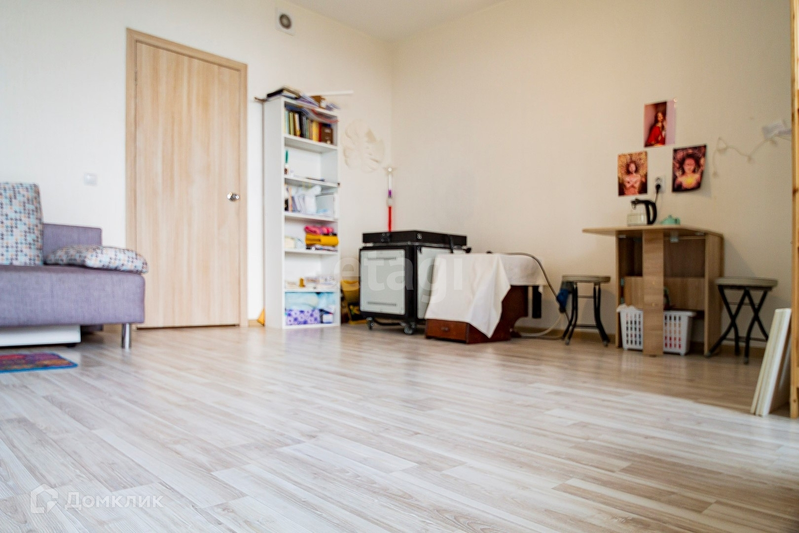 Новым владельцам остаётся кухонный гарнитур из дерева,холодильник, диван -аккордеон так же из дерева, встроенный шкаф-купе в прихожей с большими зеркалами.