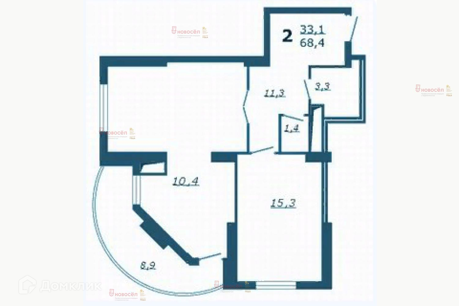 Количество комнат 2
