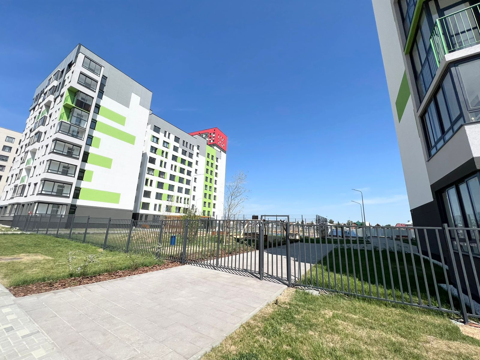 Двор с закрытой территорией, детскими и спортивными площадками, но без машин и посторонних. Просторные сквозные подъезды с колясочными и удобной навигацией. В шаговой доступности магазины, аптеки, школы ,25, 23, 16, муниципальные детские сады, частный детский сад в соседнем доме, ТЦ МЕГА, ТЦ Радуга Парк, остановки общественного транспорта.