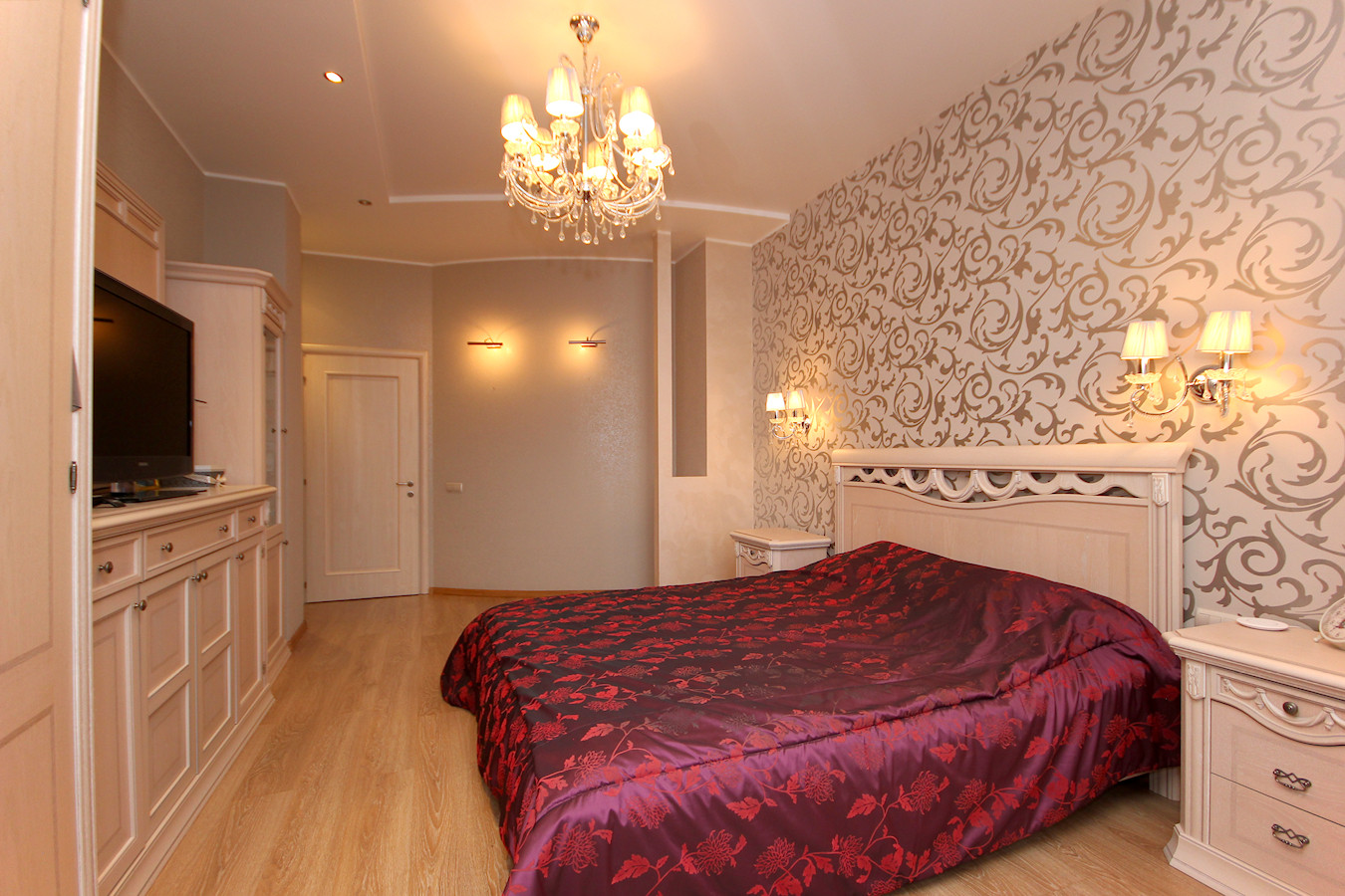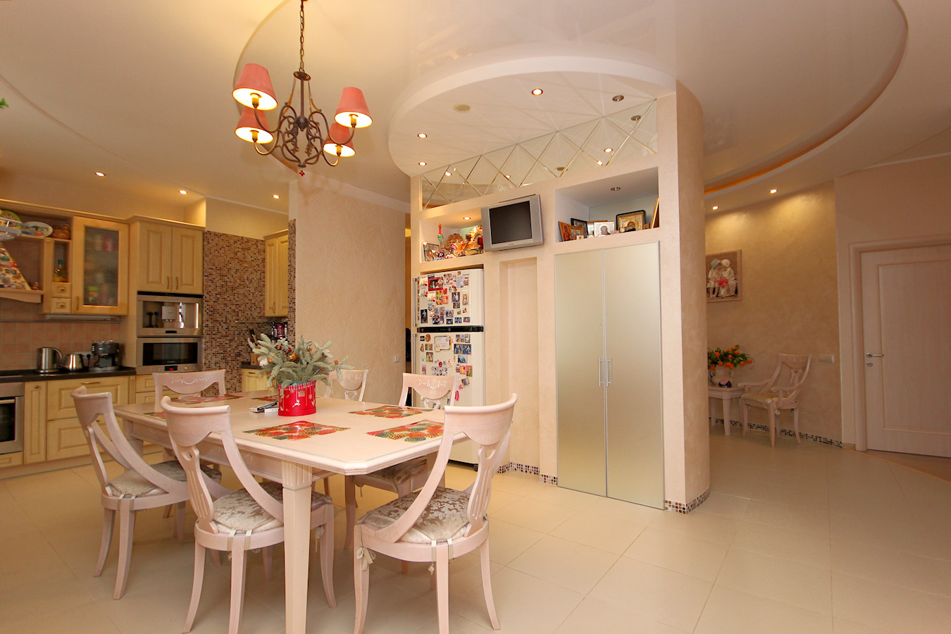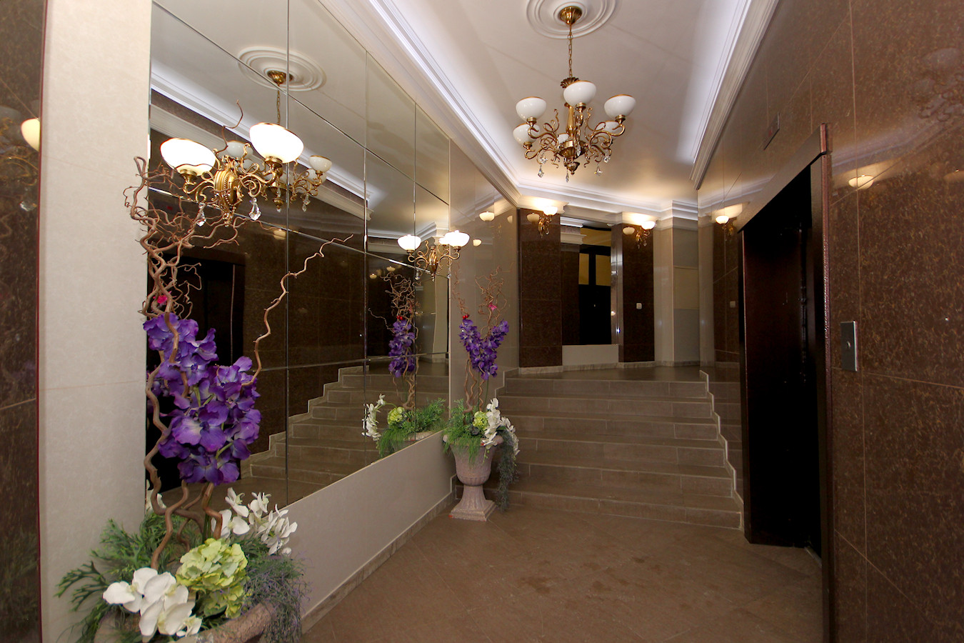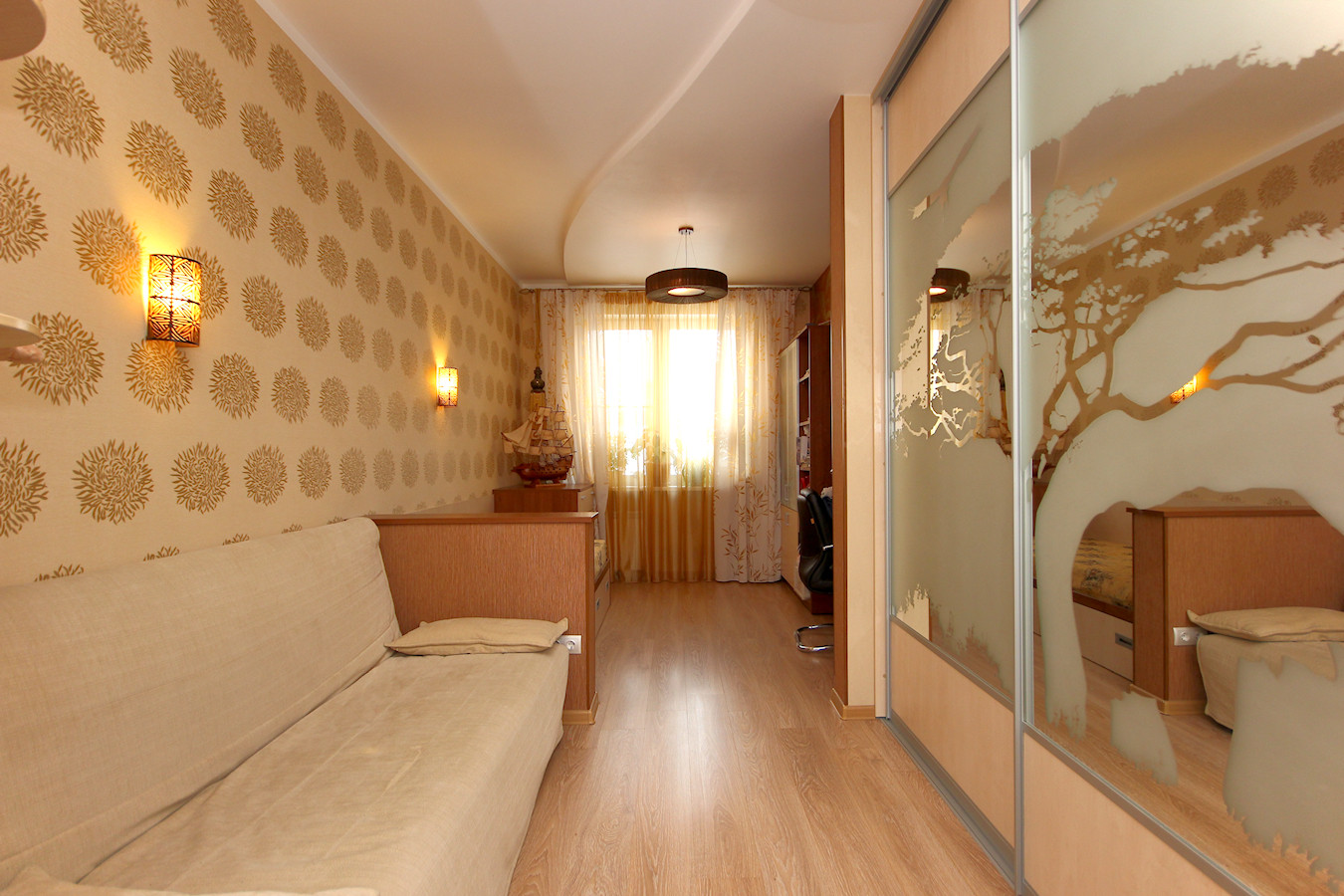 В квартире произведен качественный ремонт по индивидуальному дизайн-проекту. Проект "Большой Круг" выполнен без единого угла где центром является зеркальная колонна. Все выполнено в классическом стиле в благородных светлых тонах.