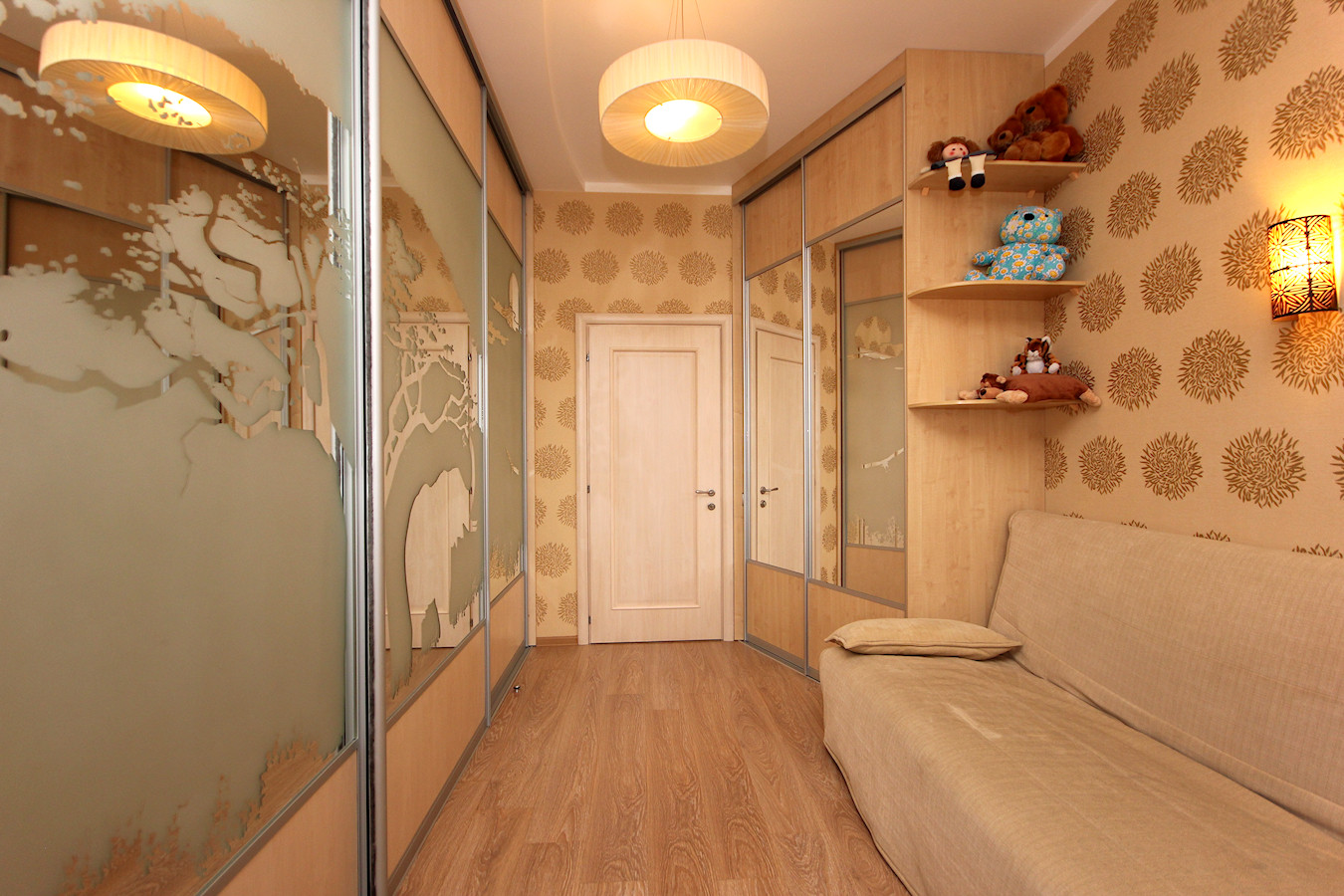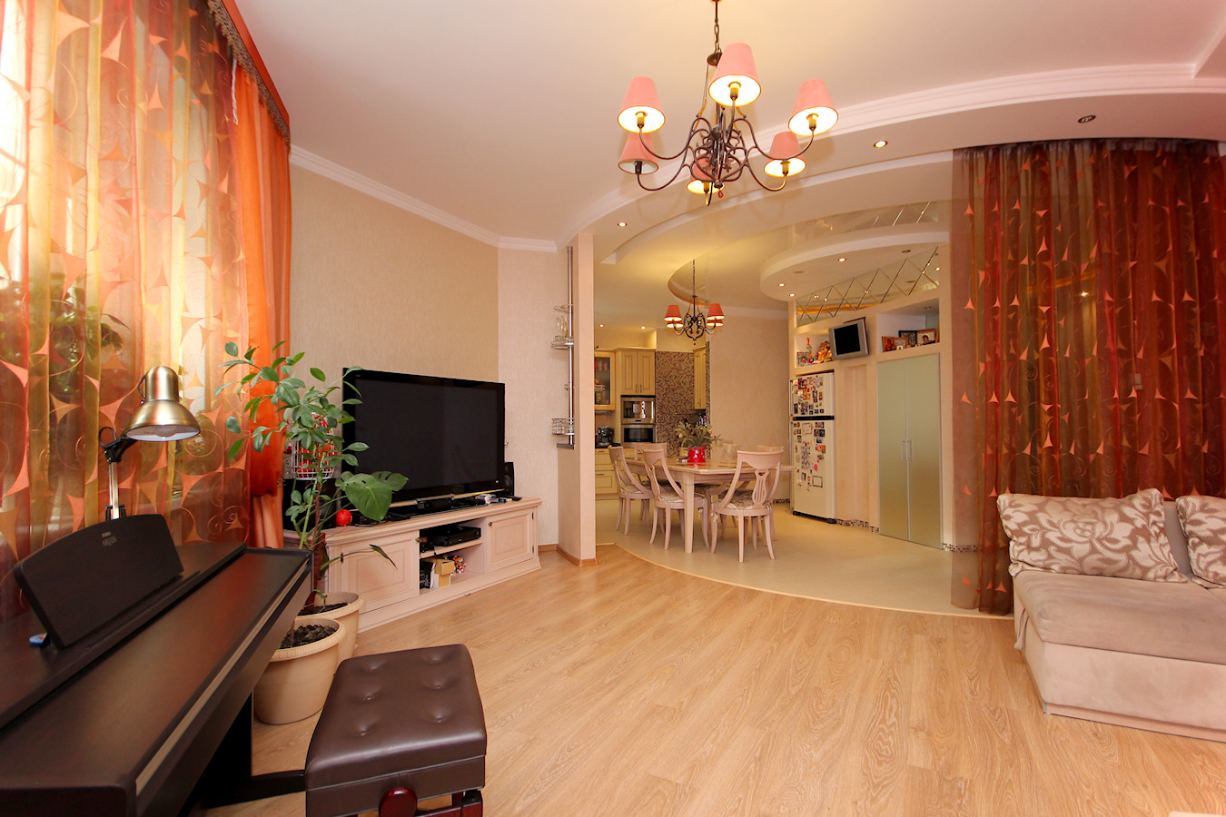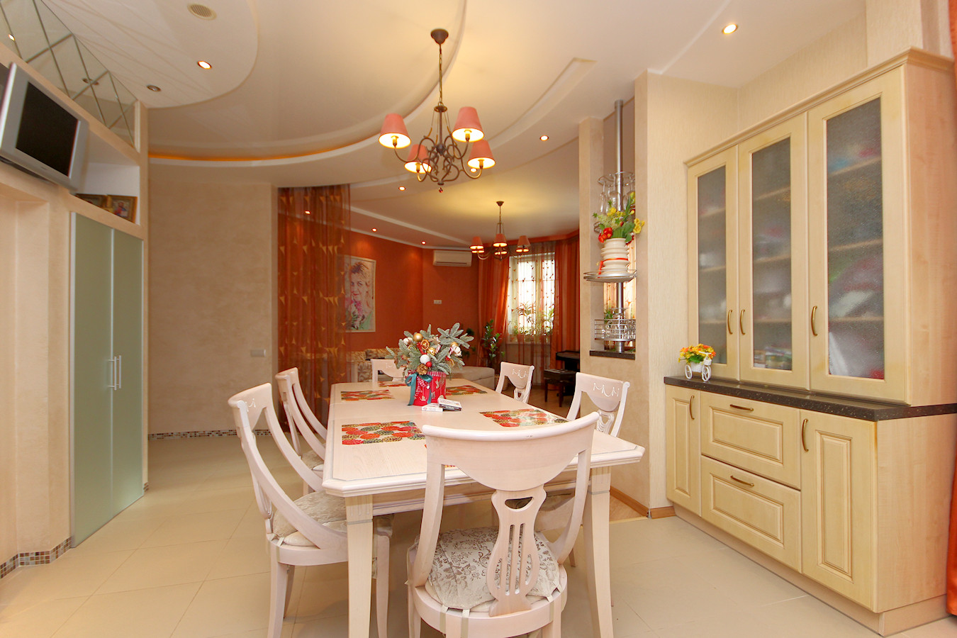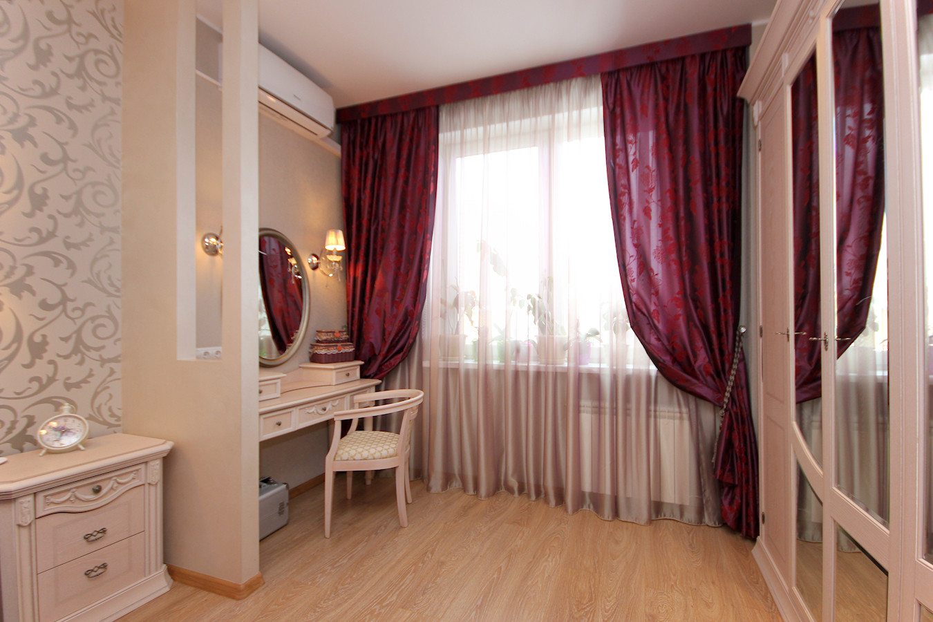 В квартире произведен качественный ремонт по индивидуальному дизайн-проекту. Проект "Большой Круг" выполнен без единого угла где центром является зеркальная колонна. Все выполнено в классическом стиле в благородных светлых тонах.
