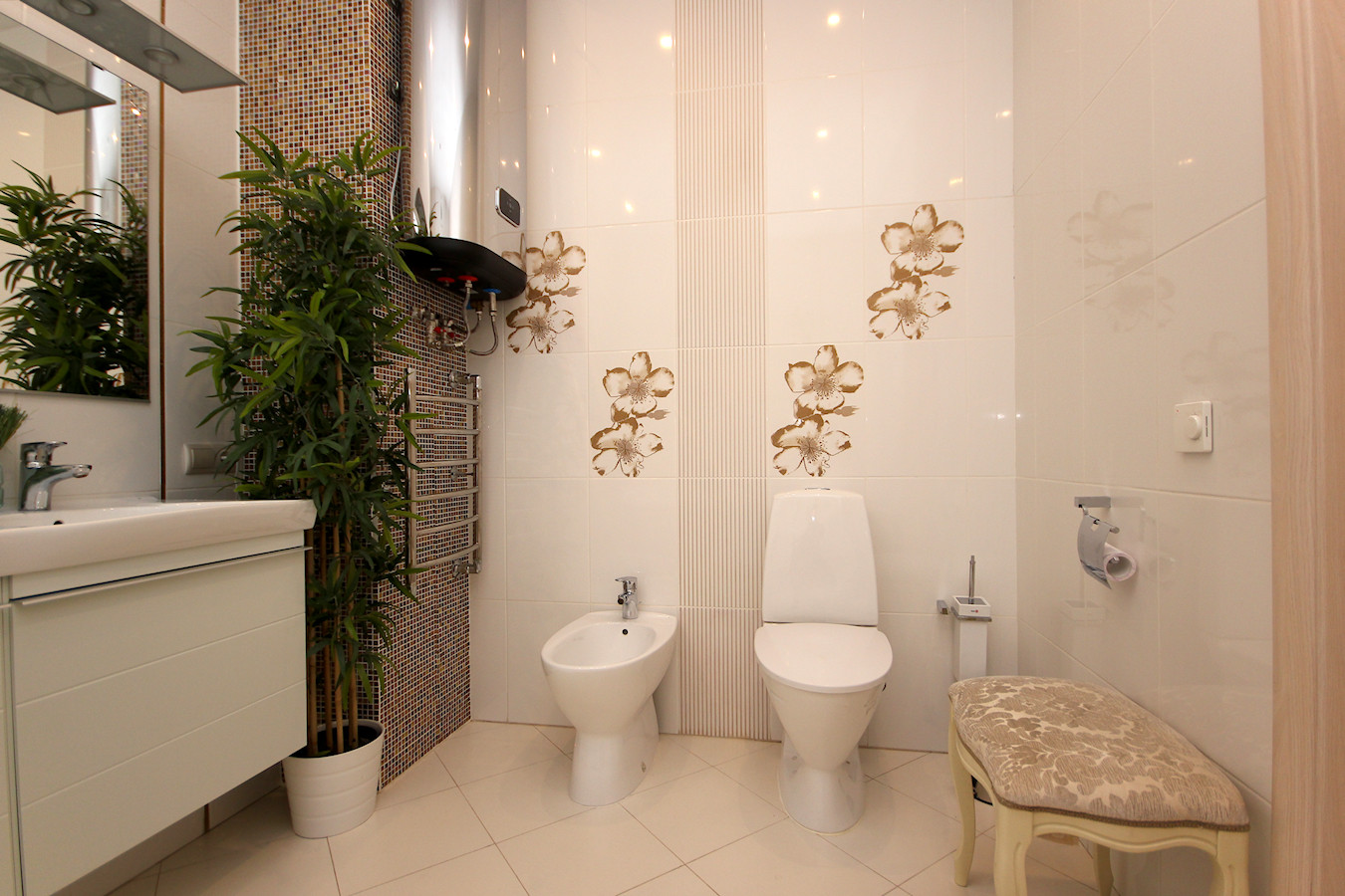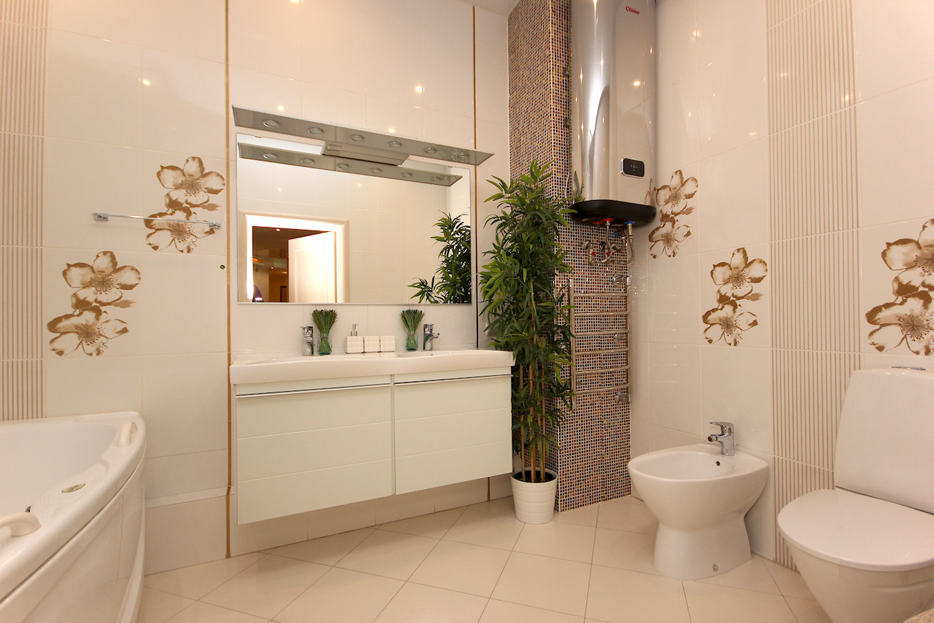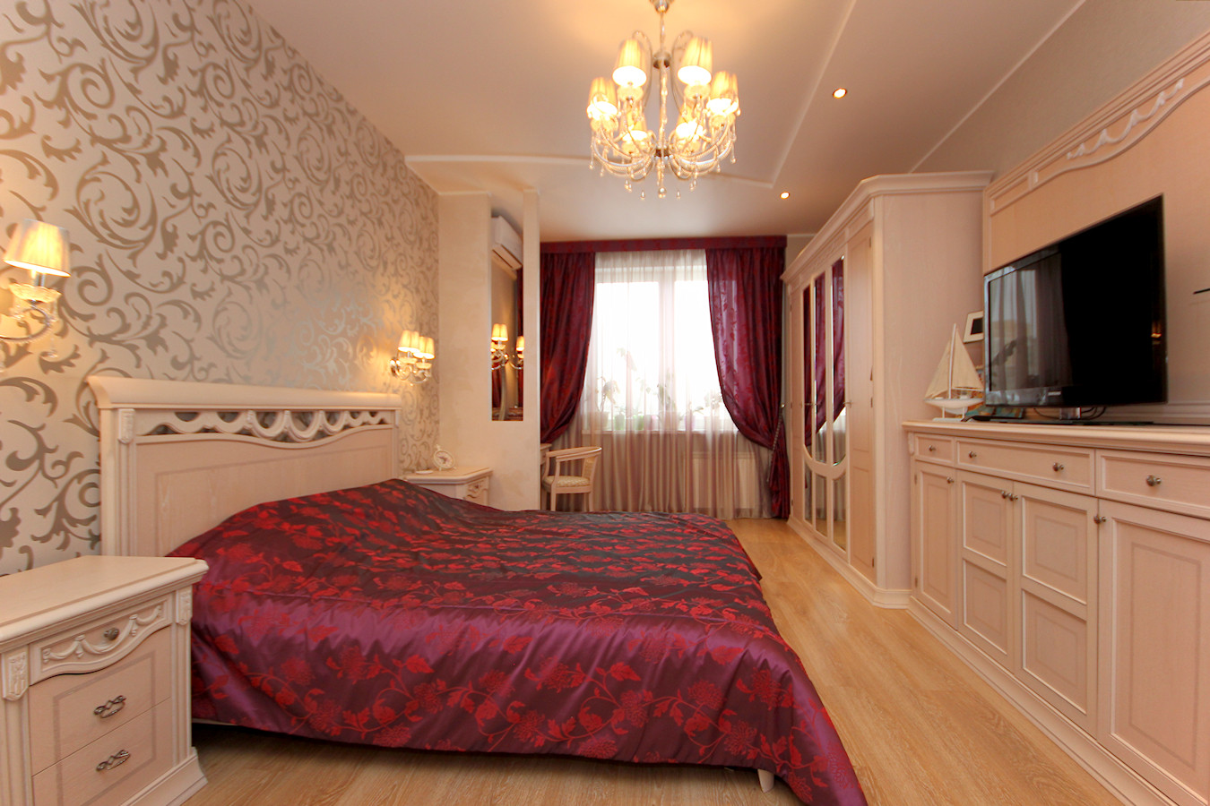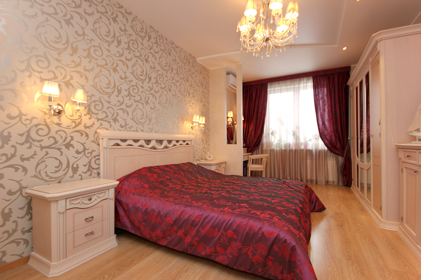 В квартире произведен качественный ремонт по индивидуальному дизайн-проекту. Проект "Большой Круг" выполнен без единого угла где центром является зеркальная колонна. Все выполнено в классическом стиле в благородных светлых тонах.