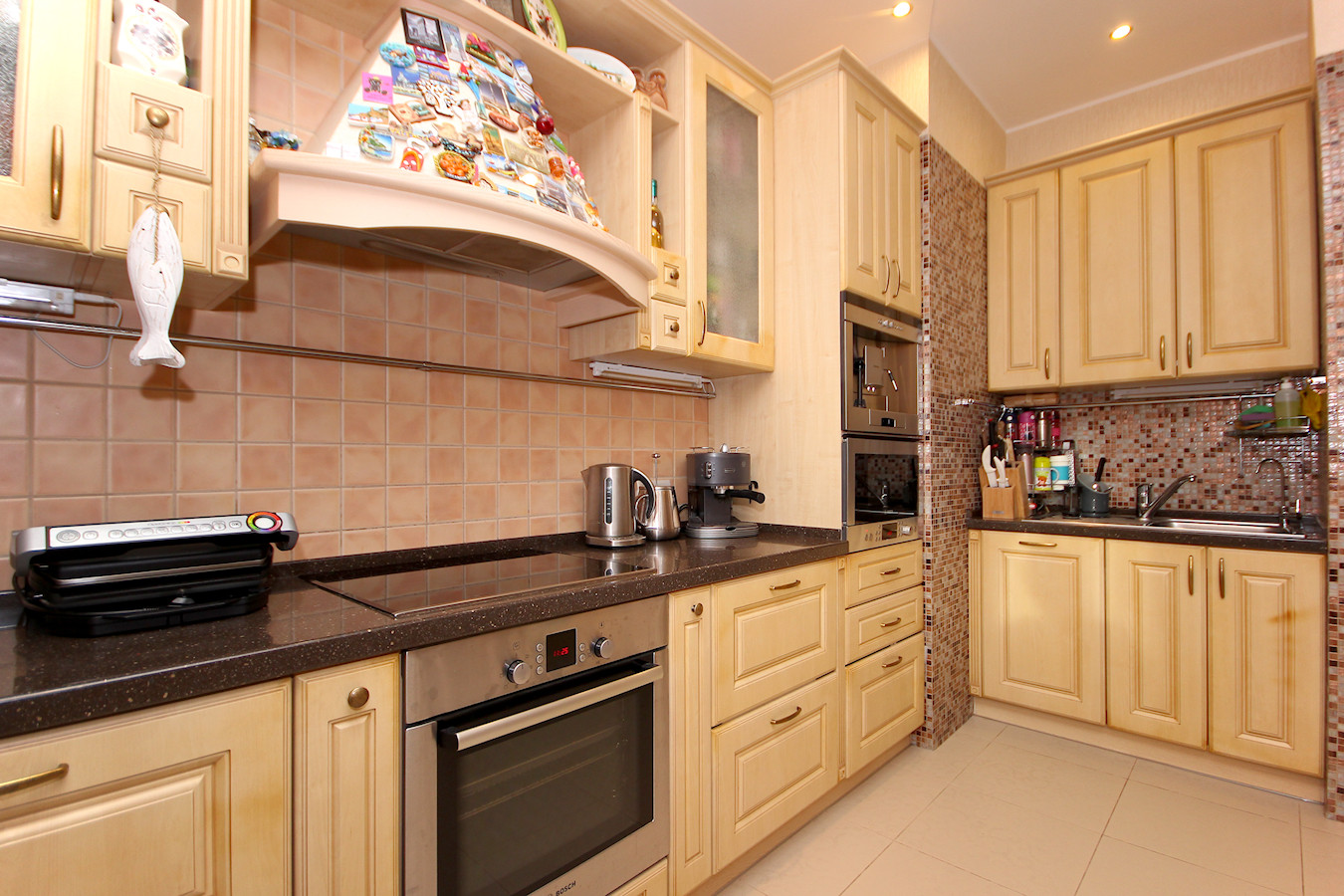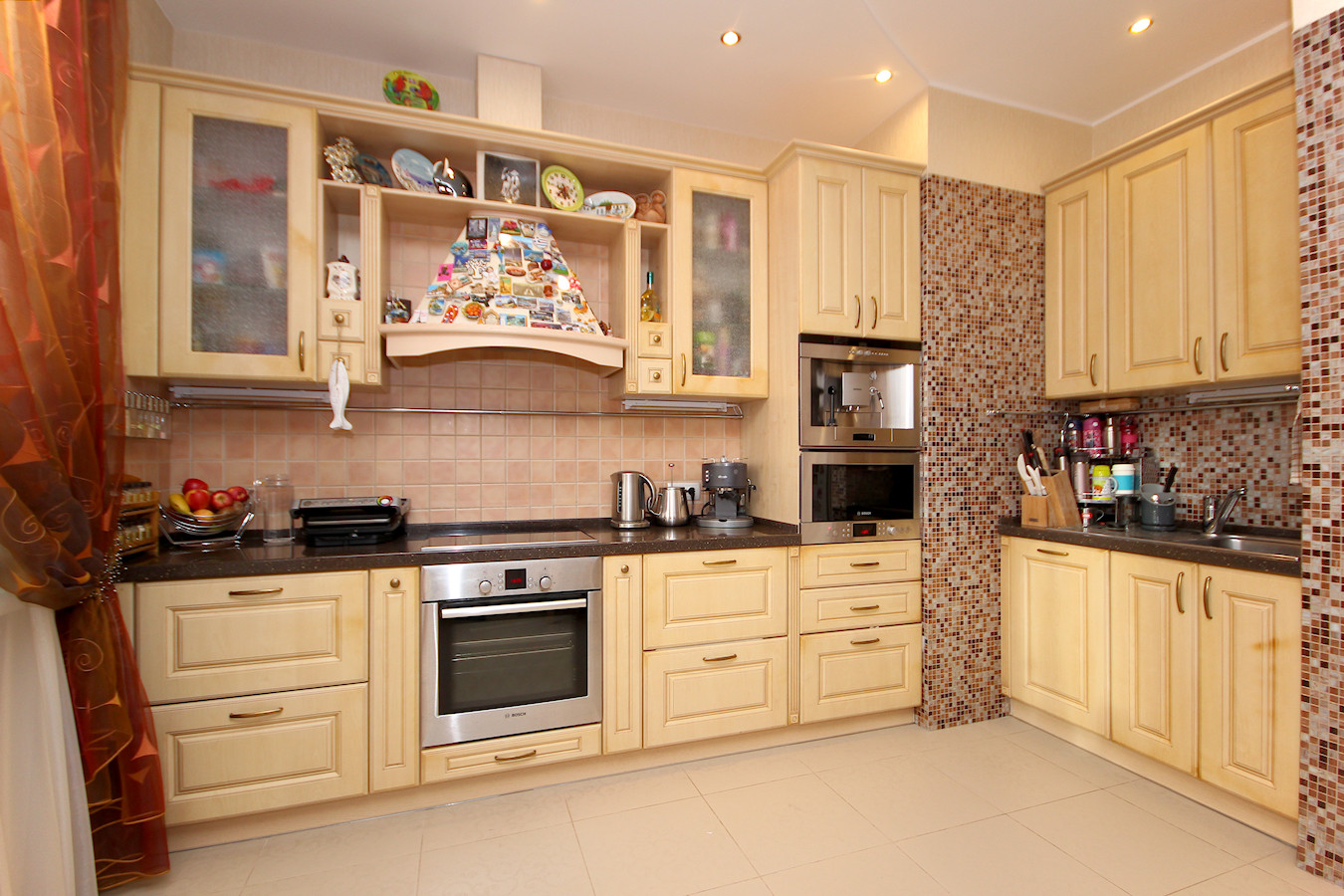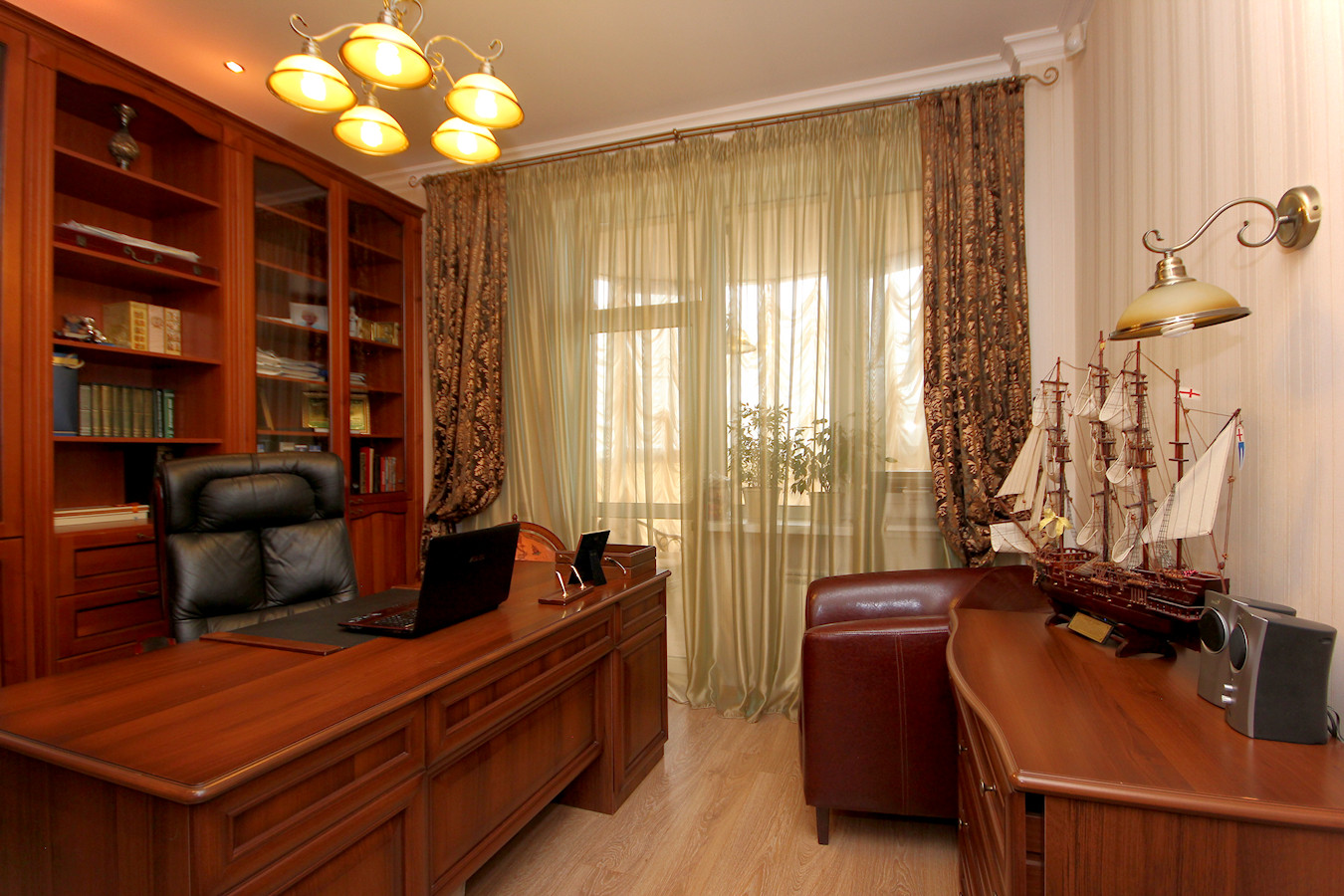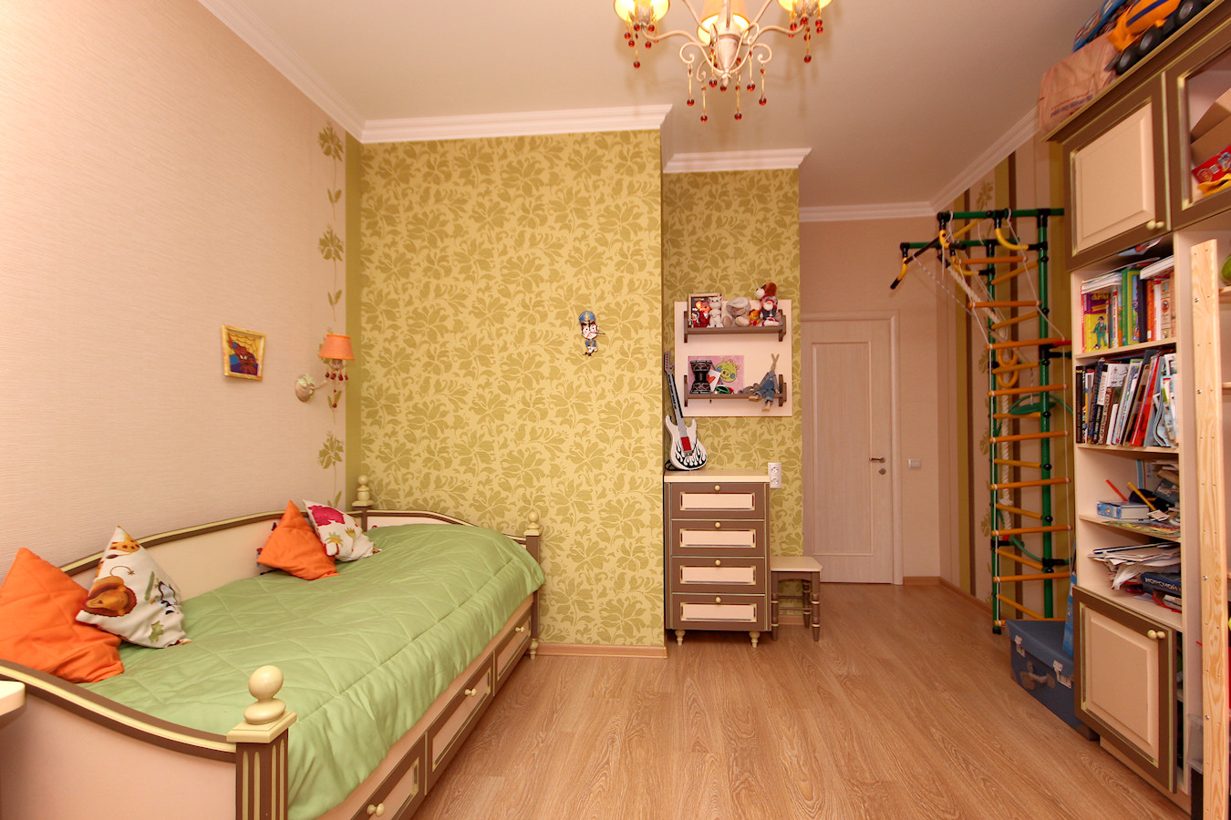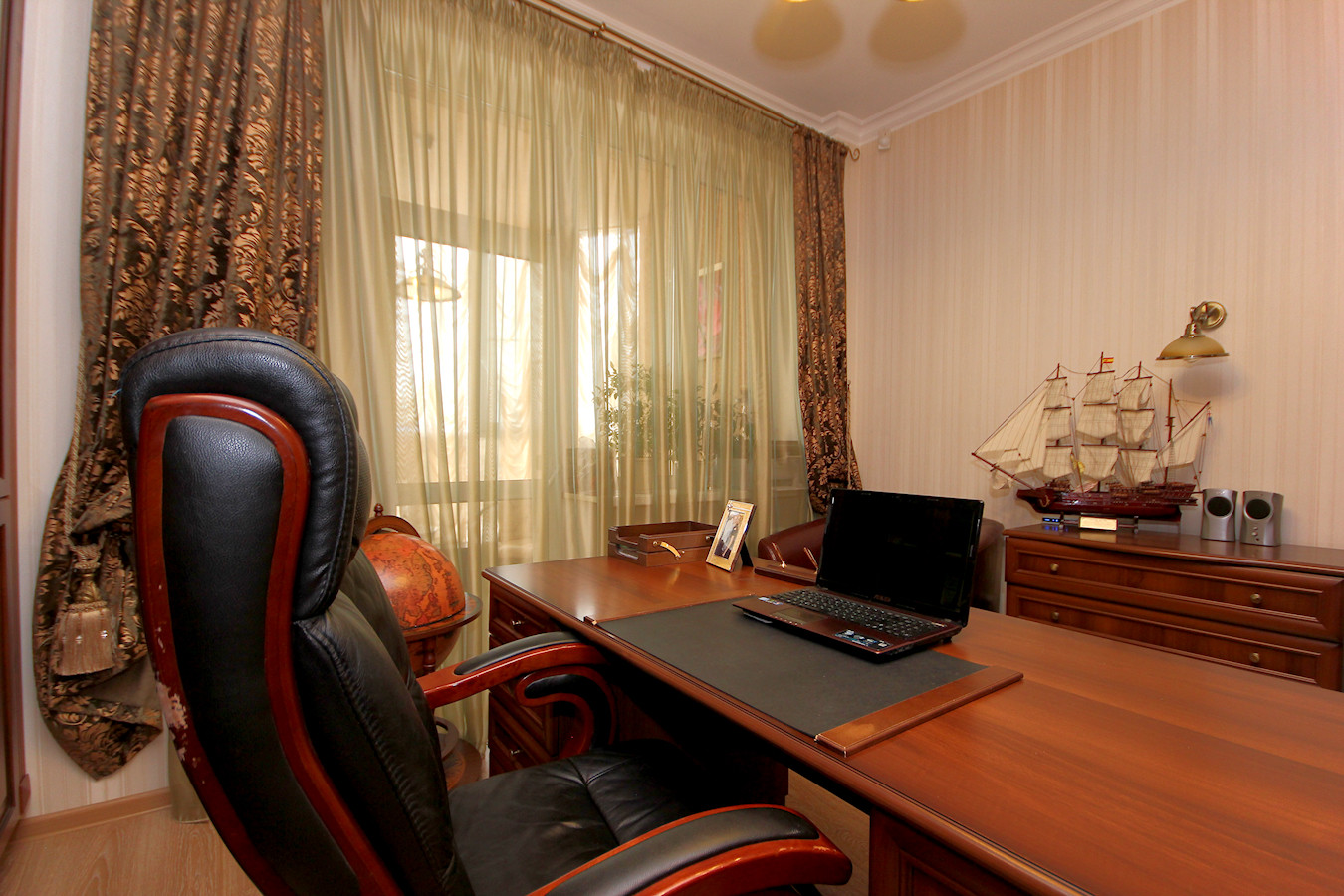 Шесть изолированных комнат (спальня родителей, 2 - детских, кабинет, комната для гостей и большая просторная гостиная. Гостиная совмещена с кухней, что очень очень удобно. На кухне встроенный кухонный гарнитур с техникой.