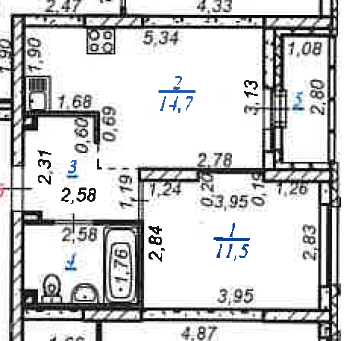 Площадь кухни 14.7 м2