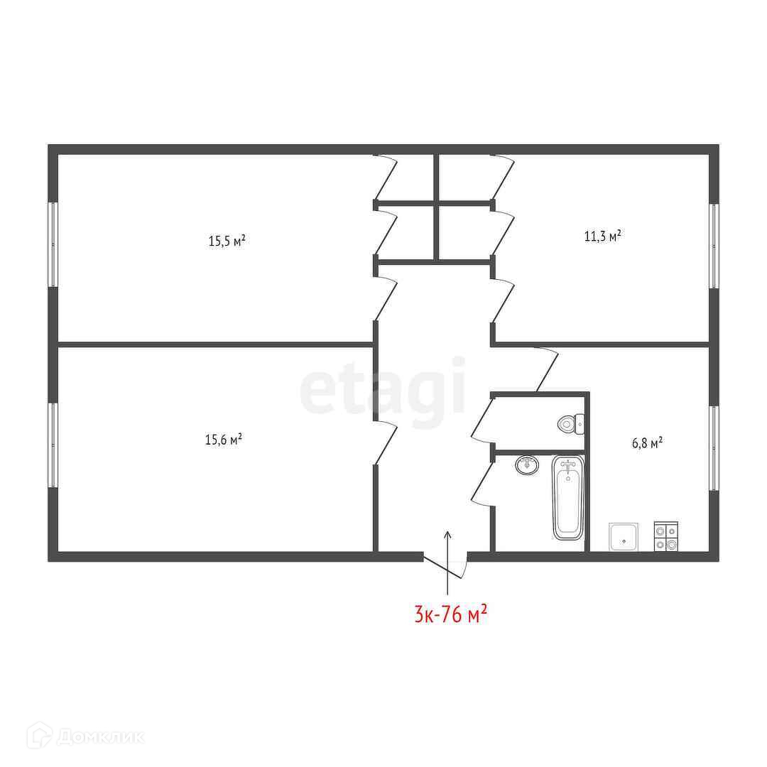 Общая площадь 76.3 м2