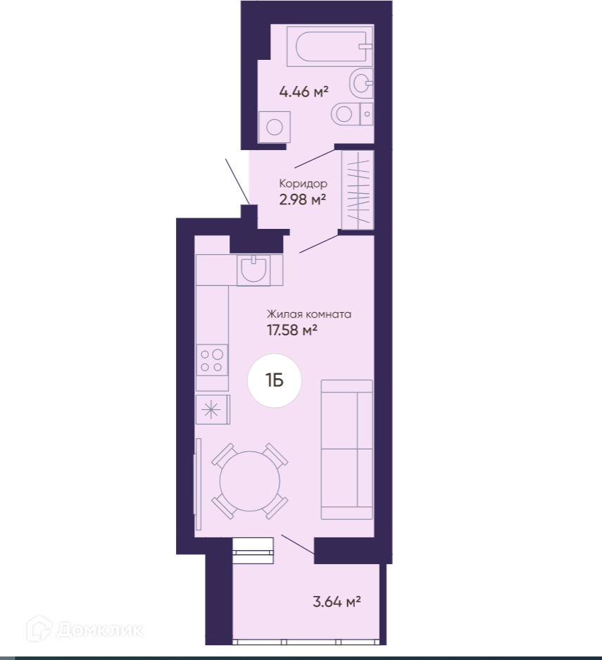 Жилая площадь 17.6 м2