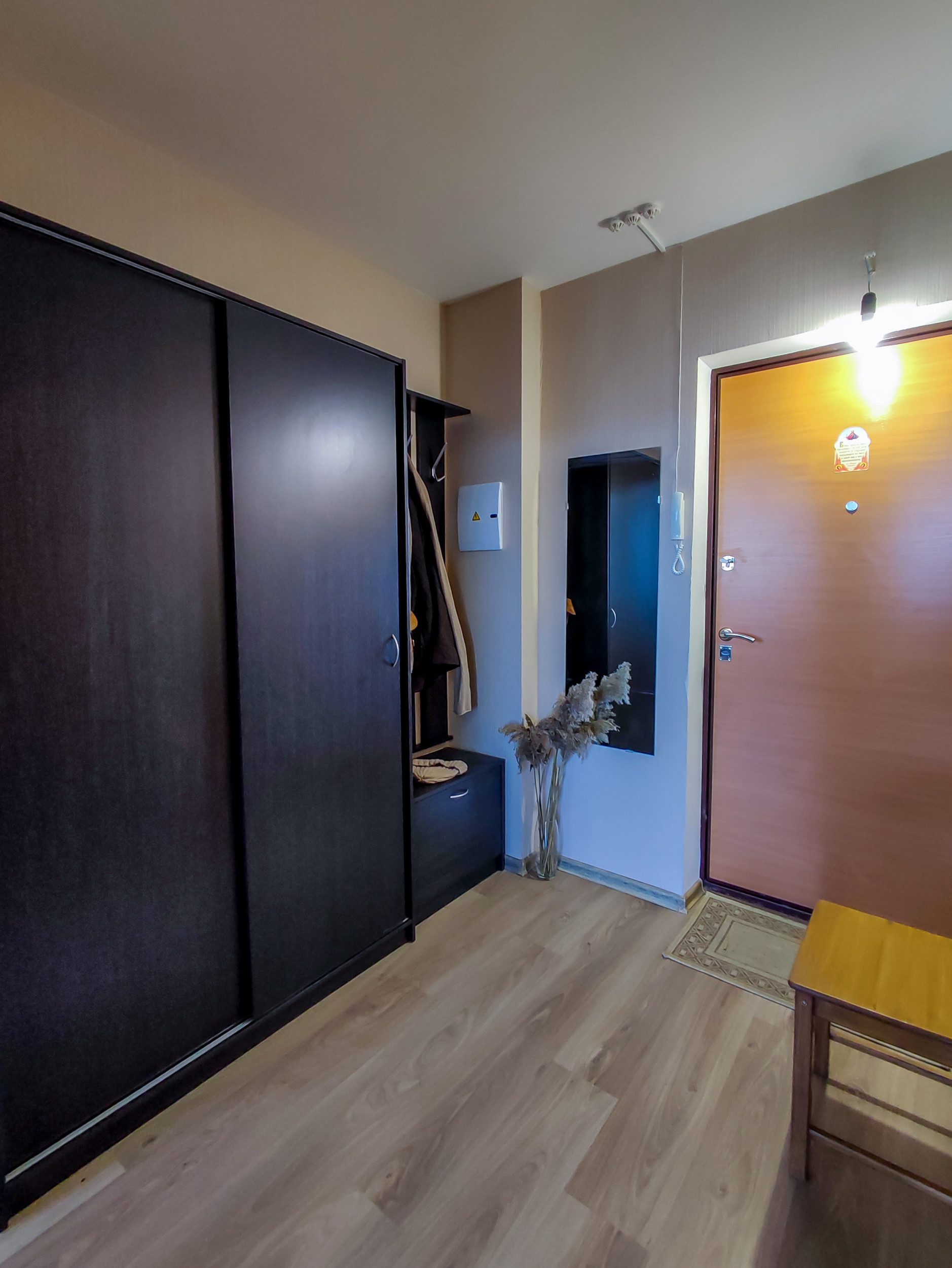 В квартире остается кухонный гарнитур с техникой, кровать, диван, шкаф-купе. Система хранения в прихожей. Укомплектованный санузел.