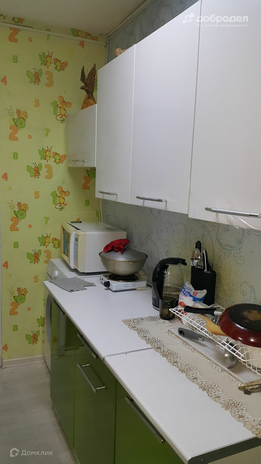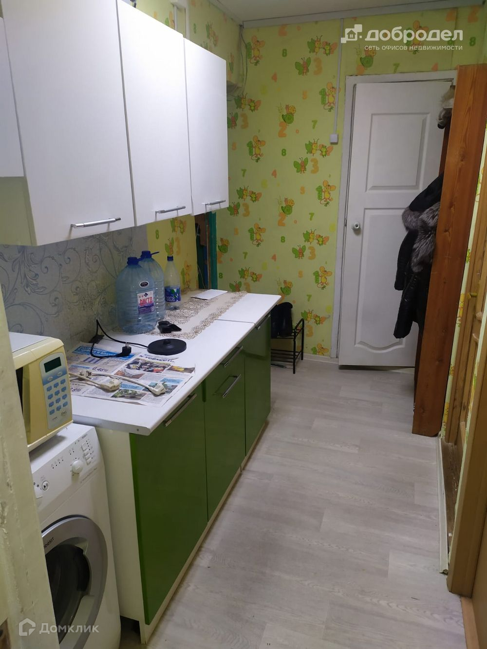 - Остает кухонный гарнитур, 2 холодильника, микроволновка, шкафы.