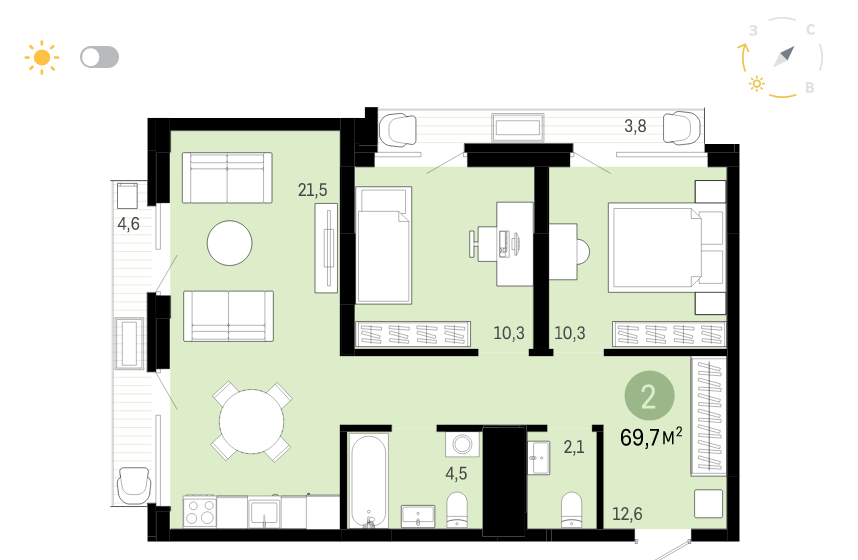 Общая площадь 69.7 м2