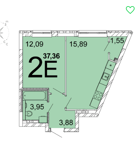 Общая площадь 38.1 м2