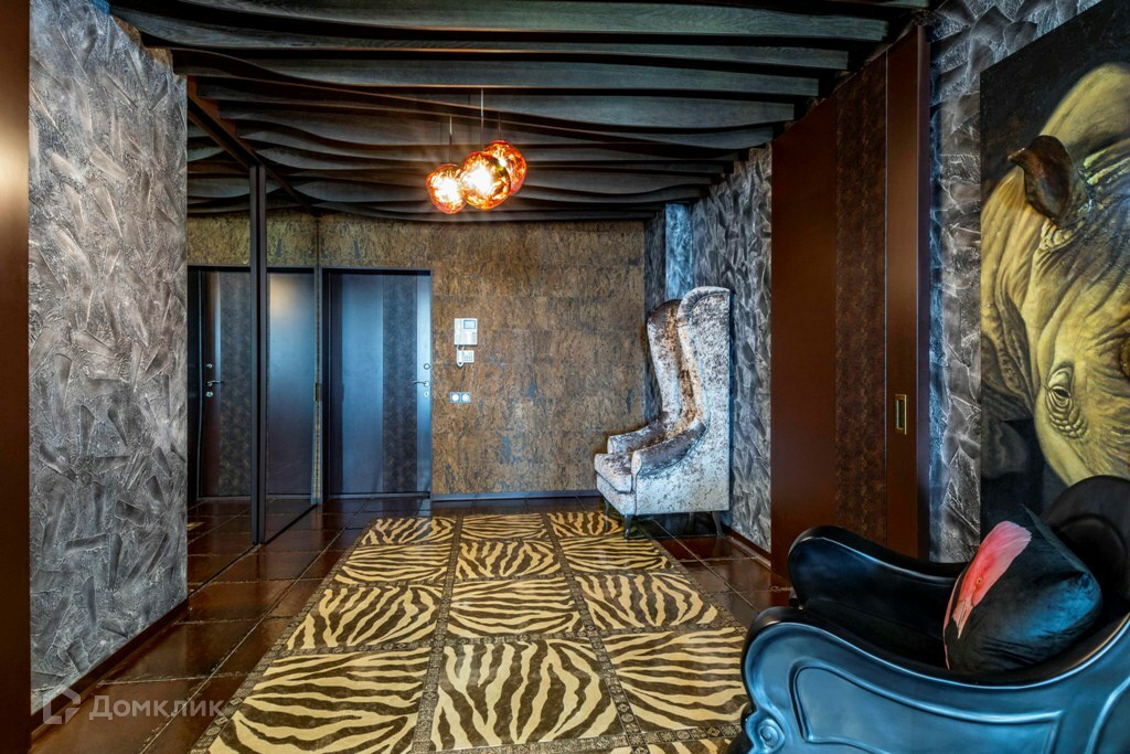 Интерьер квартиры выполнен по дизайн-проекту. В безупречной отделке использованы высококачественные натуральные материалы. Напольное покрытие: в гостиной – массивный паркет палисандр (Малазия); в комнатах – пробковое покрытие (Испания, Португалия). В санузле и ванной установлены: умный унитаз ТОТО (Япония), ванна Riho (Чехия), унитаз-биде Villeroy&Boch, все смесители и инсталляции Италия, керамическая плитка и керамический гранит Porcelanosa. В квартире установлены межкомнатные раздвижные двери со скрытой направляющей.