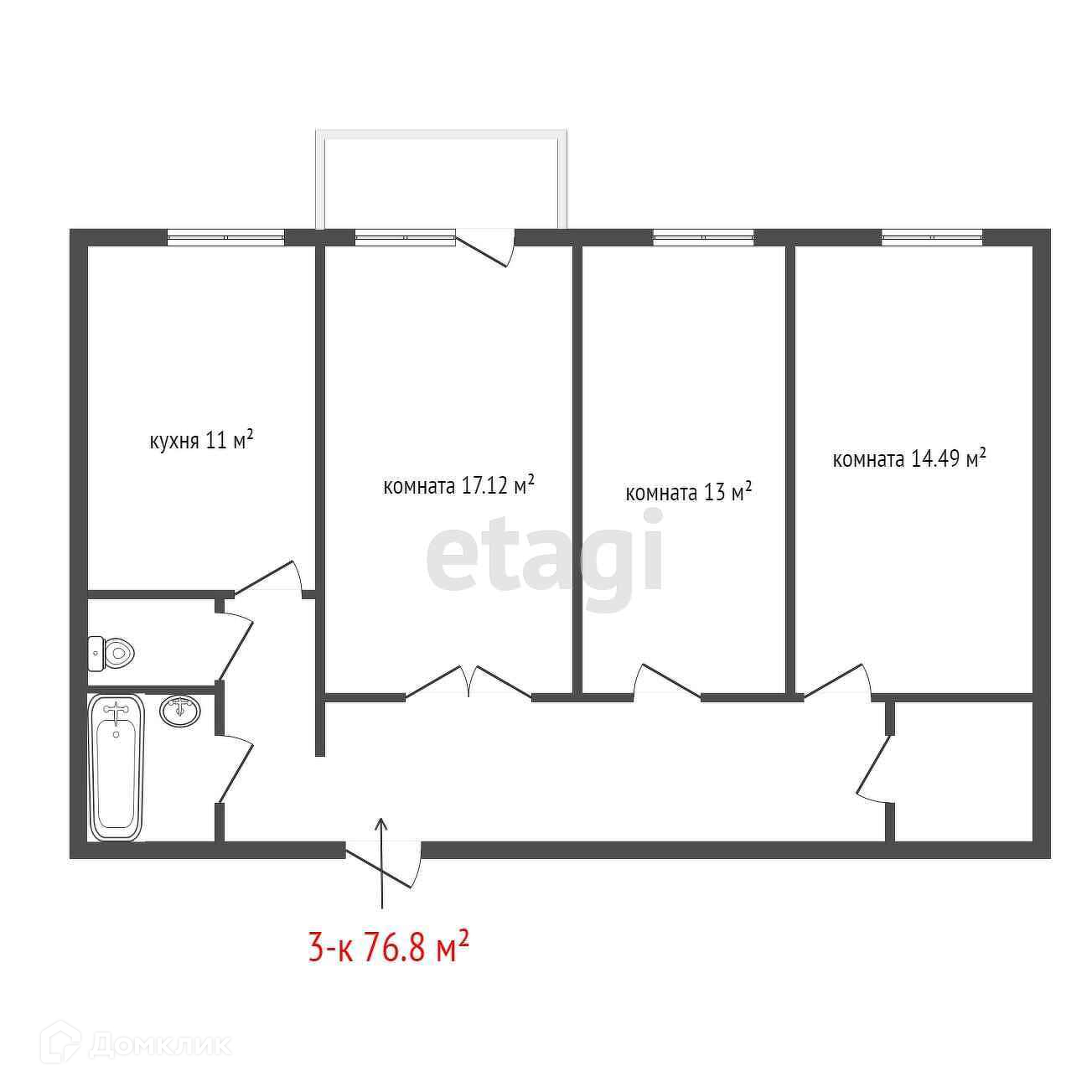 Общая площадь 76.8 м2