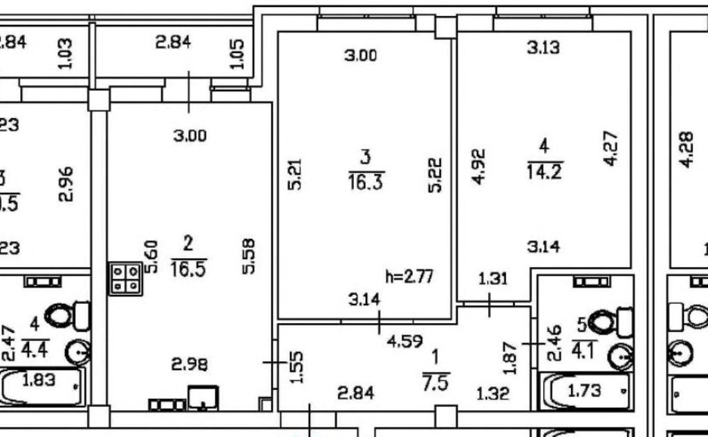 Высота потолков 2.7 м
