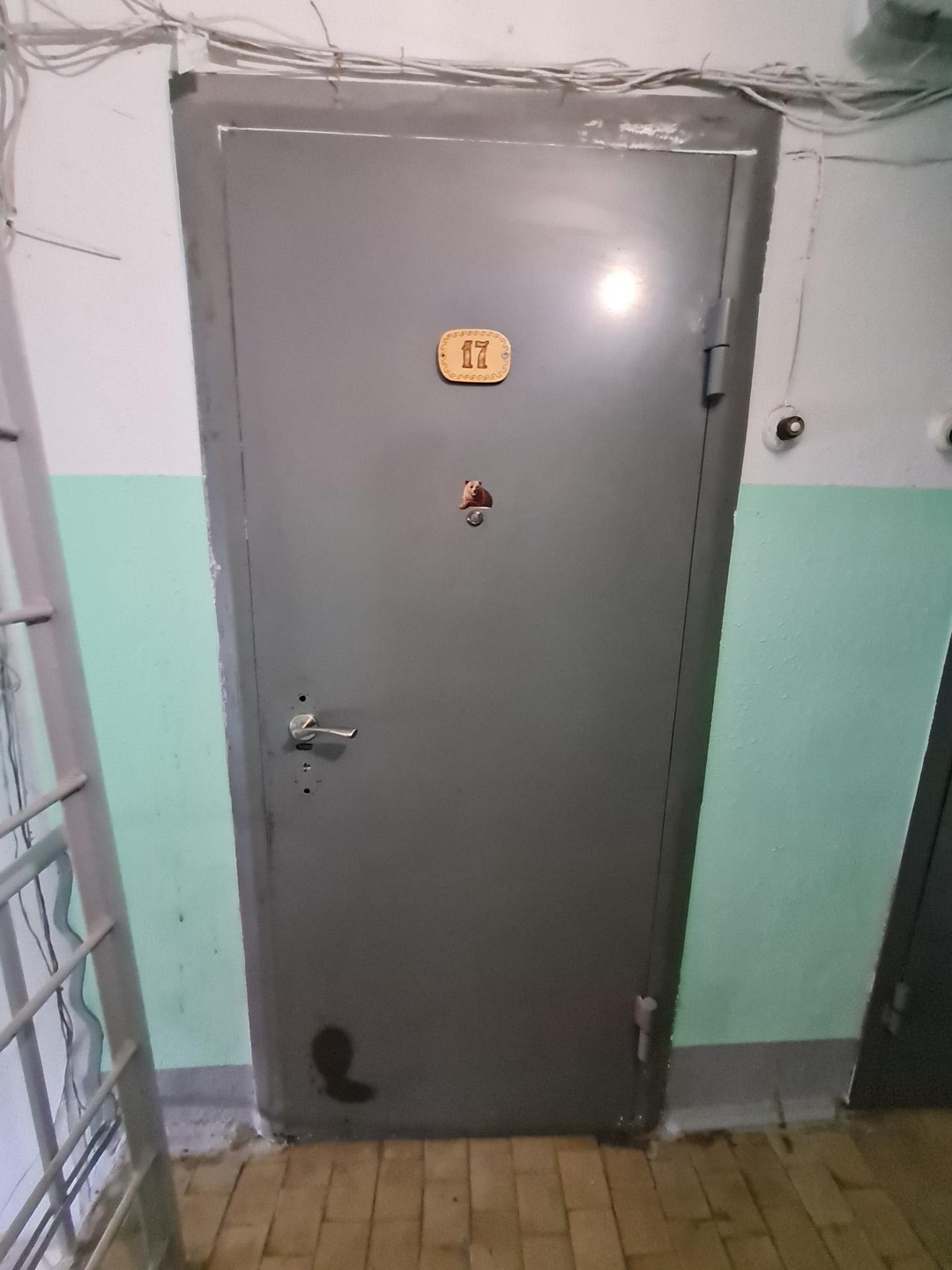 На этаже 4 квартиры, и наш последний отгорожен от основного подъезда дополнительной железной дверью.