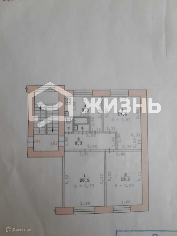 Жилая площадь 57.1 м2