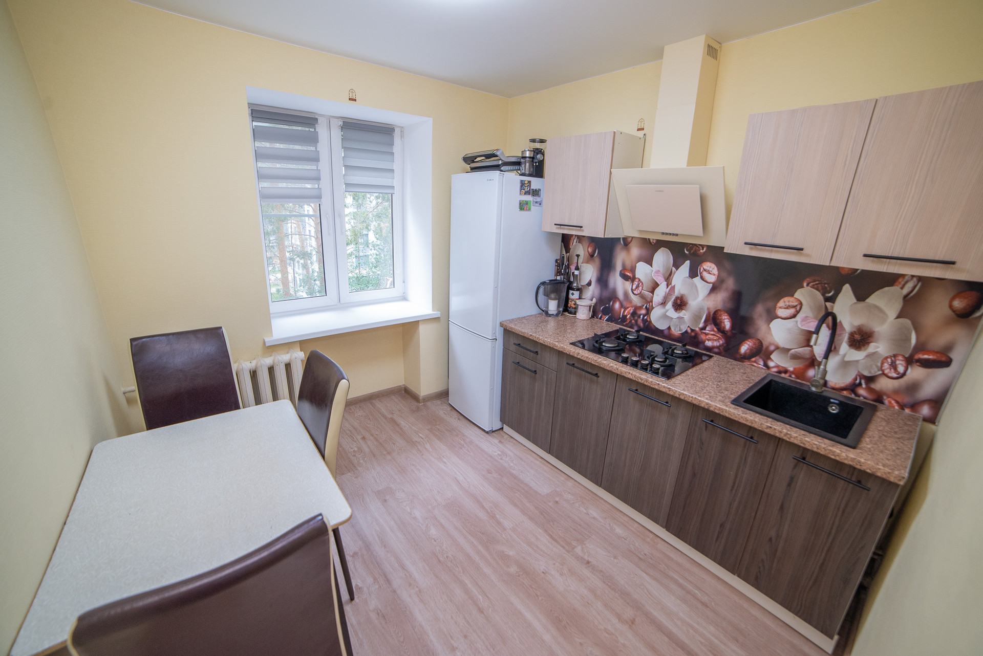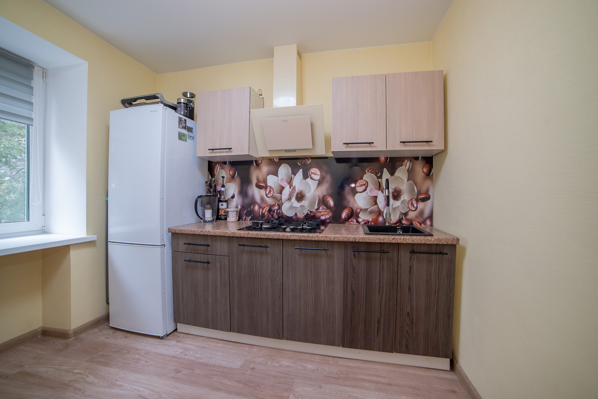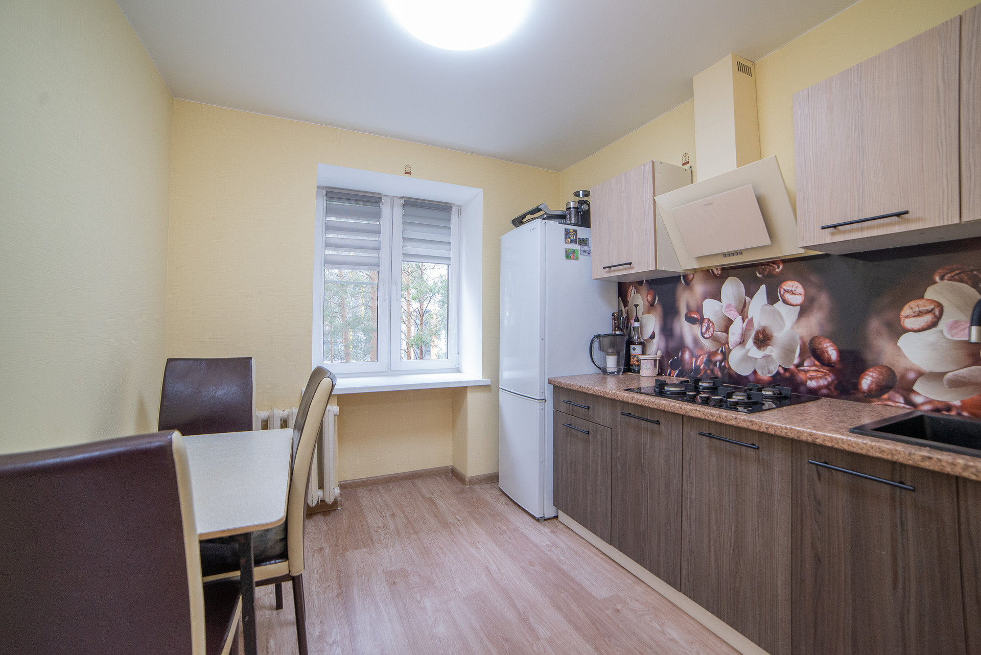 Грамотная планировка квартиры состоит из прихожей, в которой расположена вместительная гардеробная, просторной кухни с новым кухонным гарнитуром, и большой, удобной комнаты с выходом на застекленный балкон.