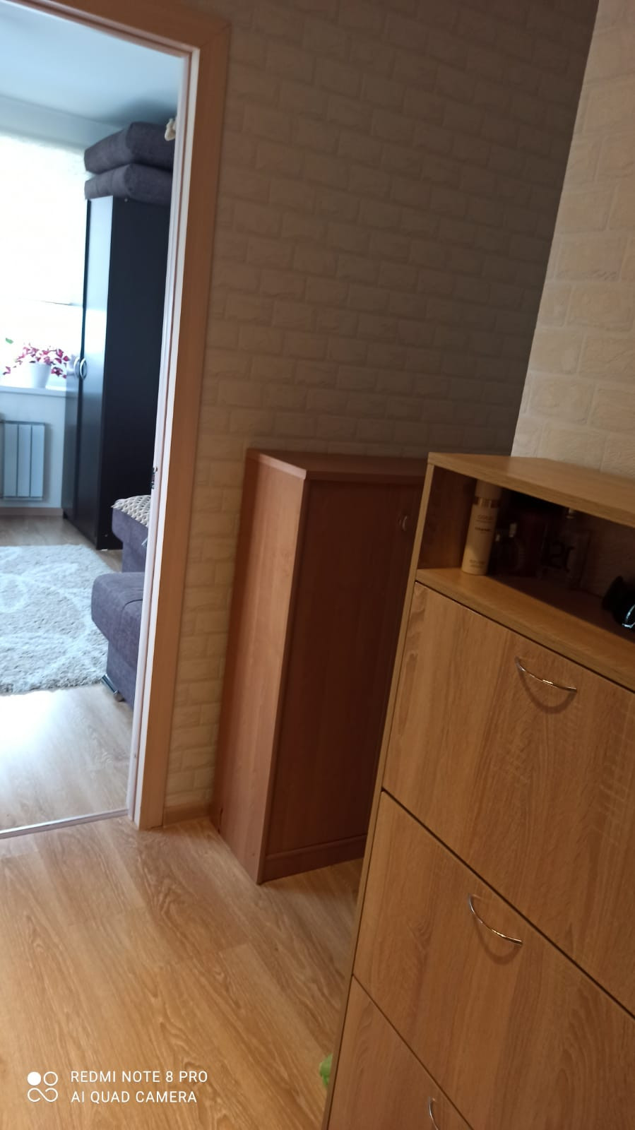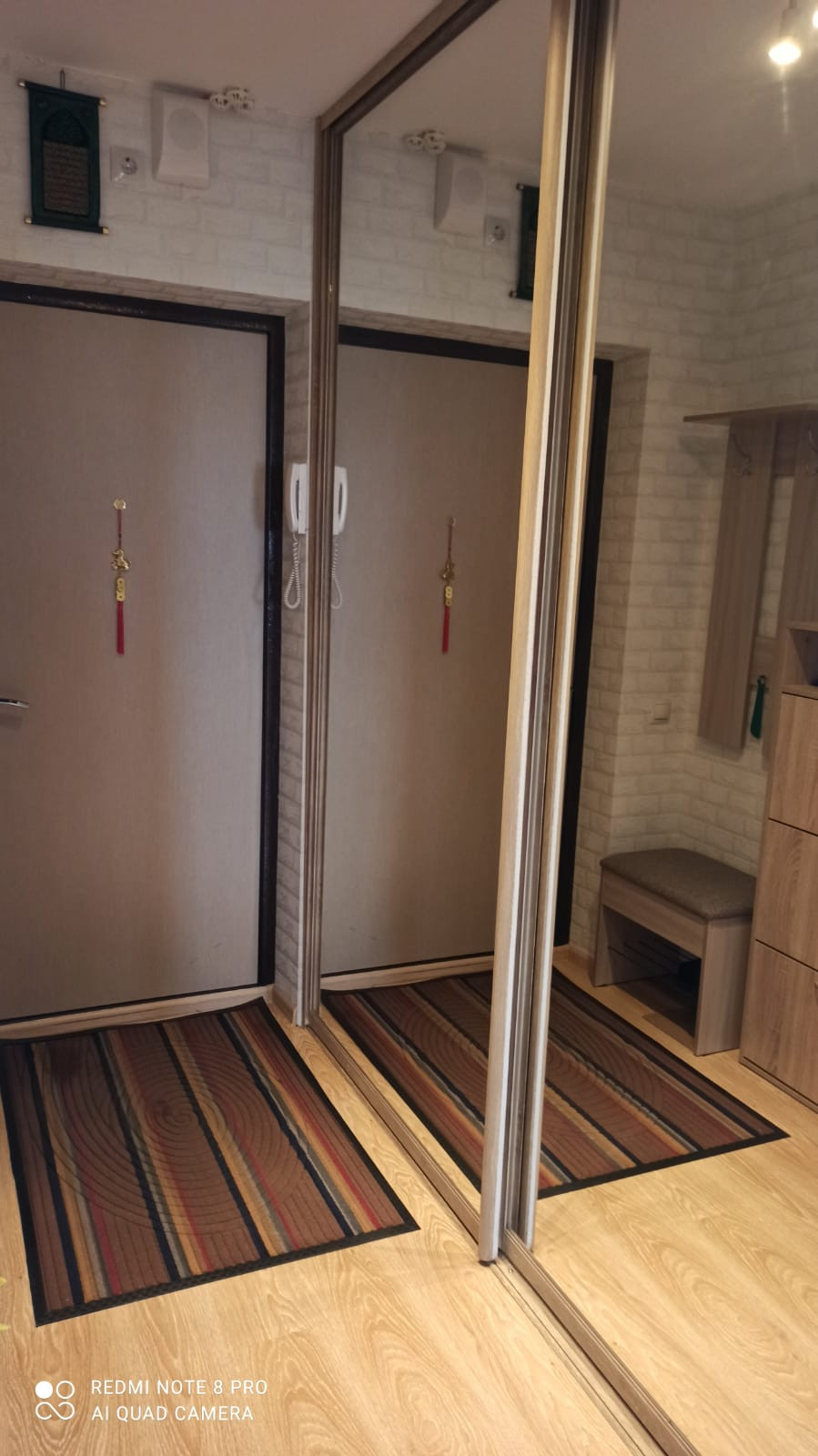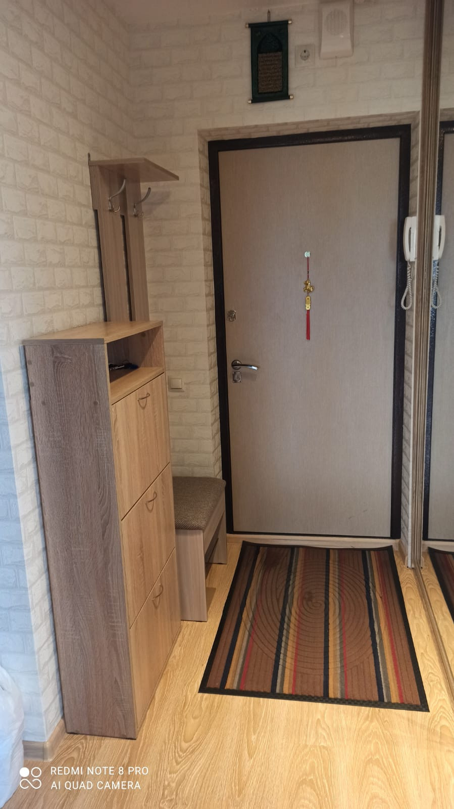 В квартире остается корпусная мебель, светильник, столик, стулья диванчик на кухне, кухонный гарнитур с встроенной техникой, микроволновка, в прихожей – встроенный шкаф-купе и маленький шкафчик.