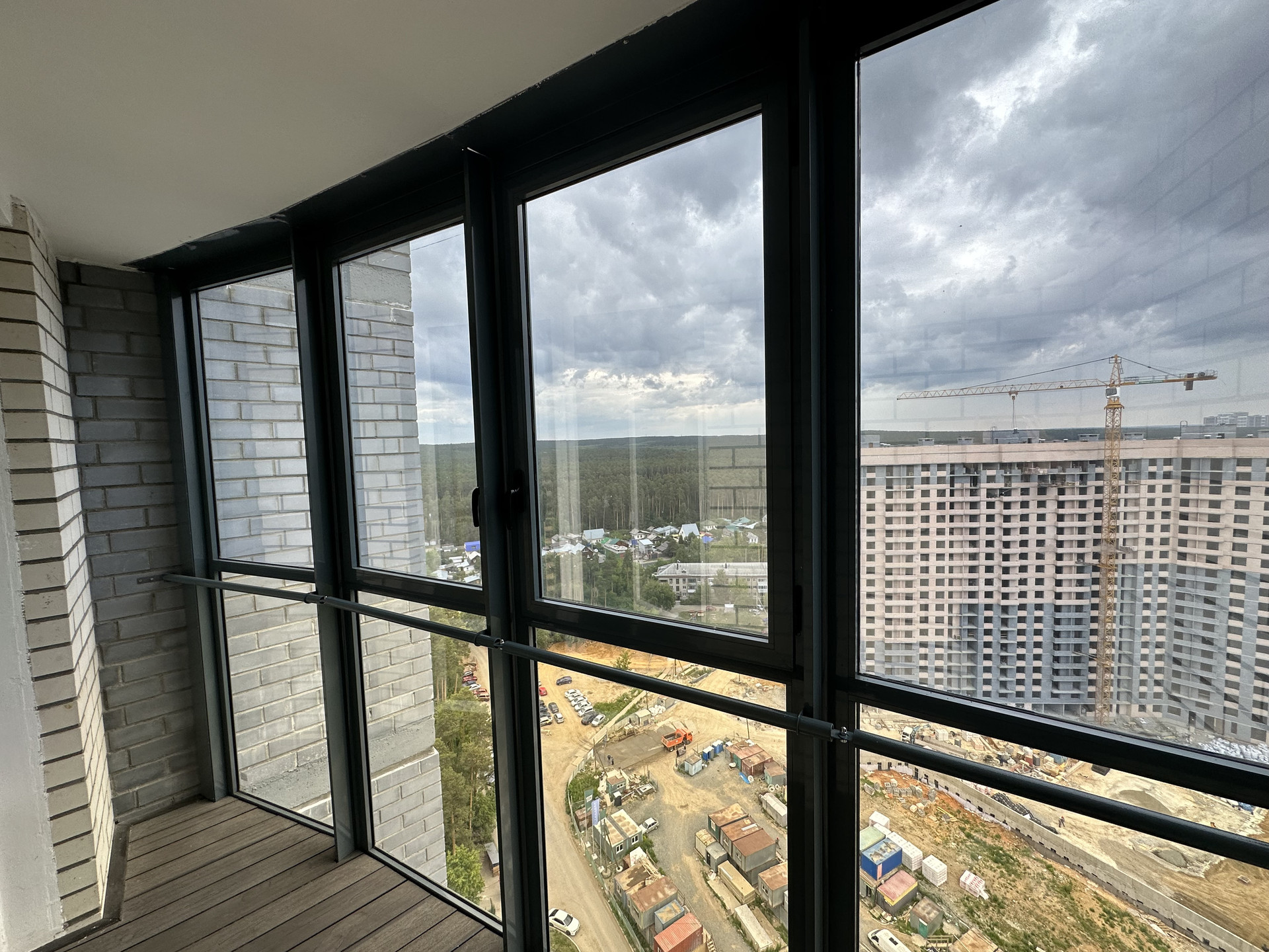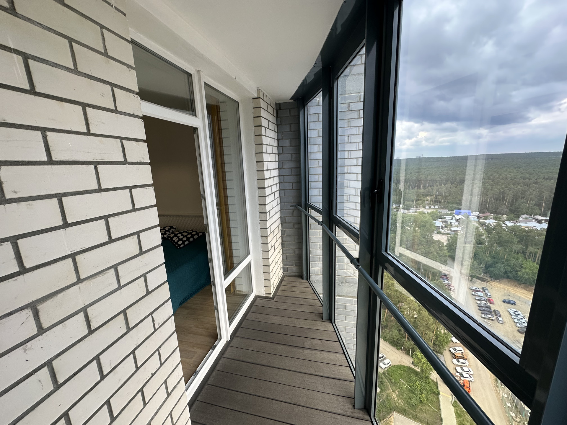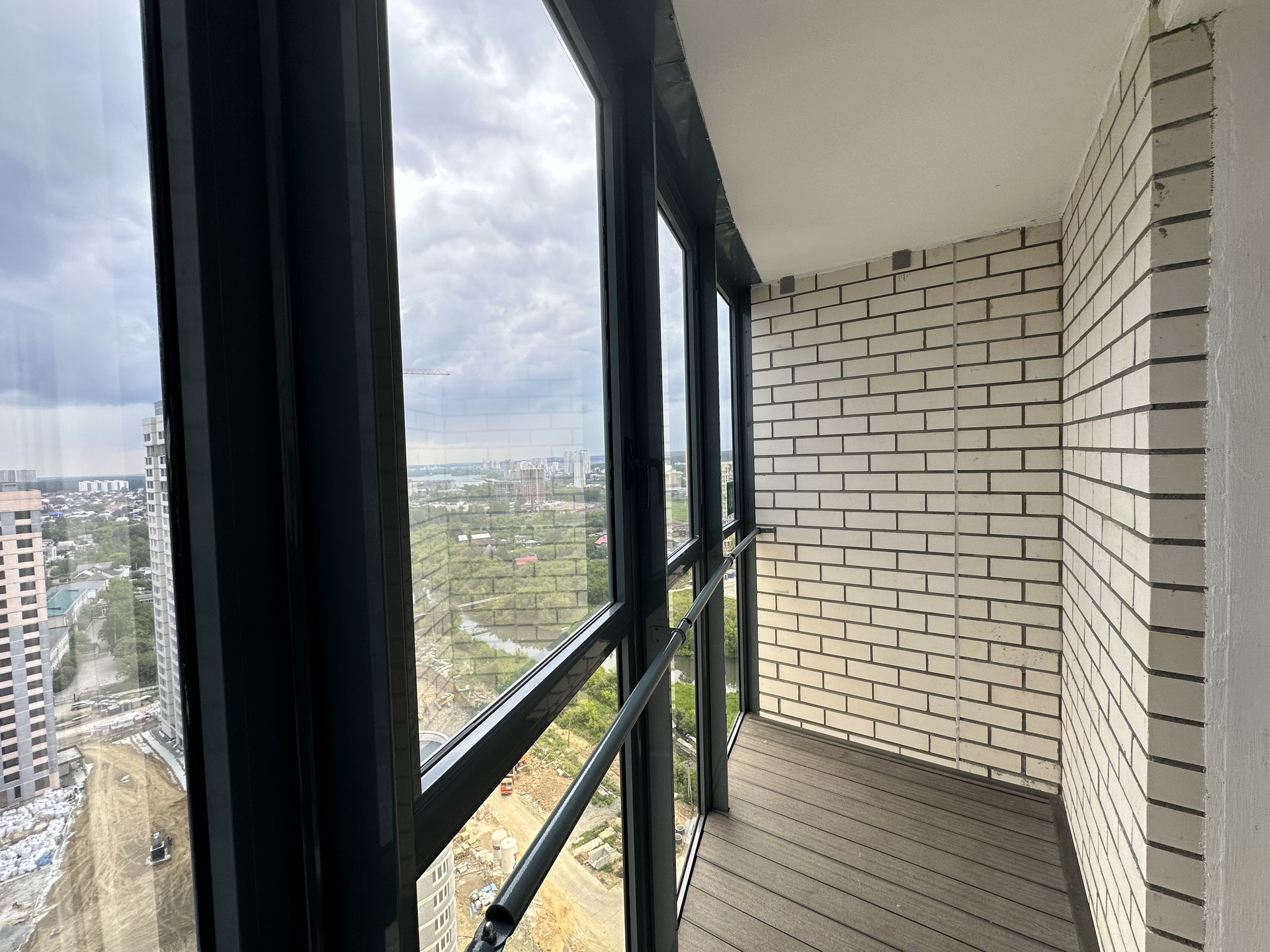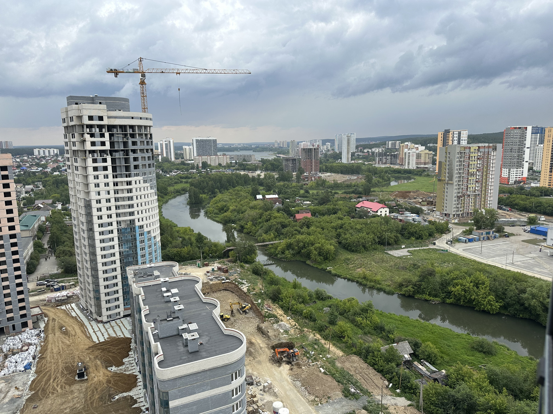 Из окон открывается красивый вид на реку, лес и городскую панораму.