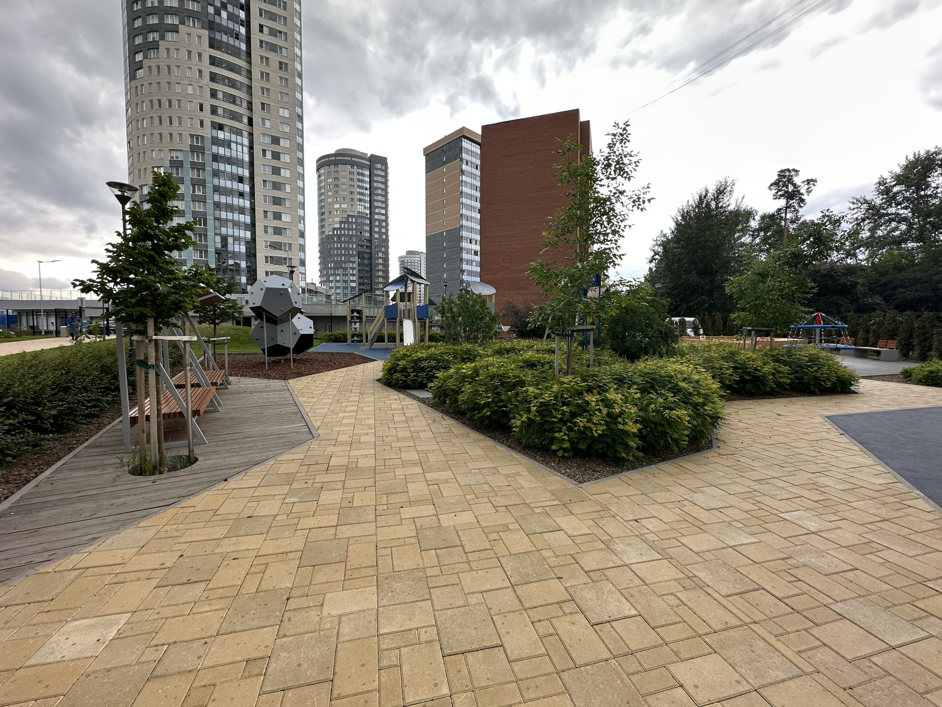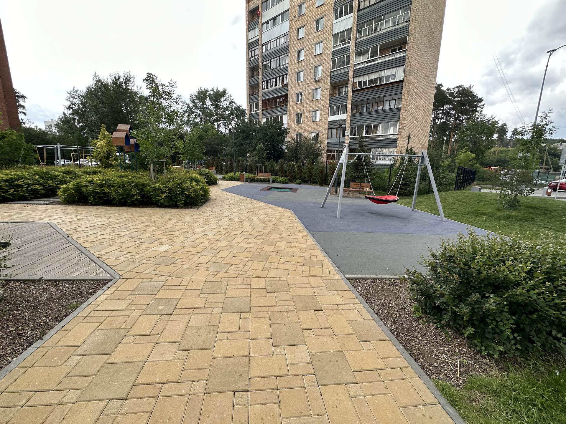 Двор закрыт и зонирован: игровая зона с детскими площадками, зона отдыха и спорт площадка, во дворе выполнен ландшафтный дизайн озеленения, все очень чисто и ухожено!